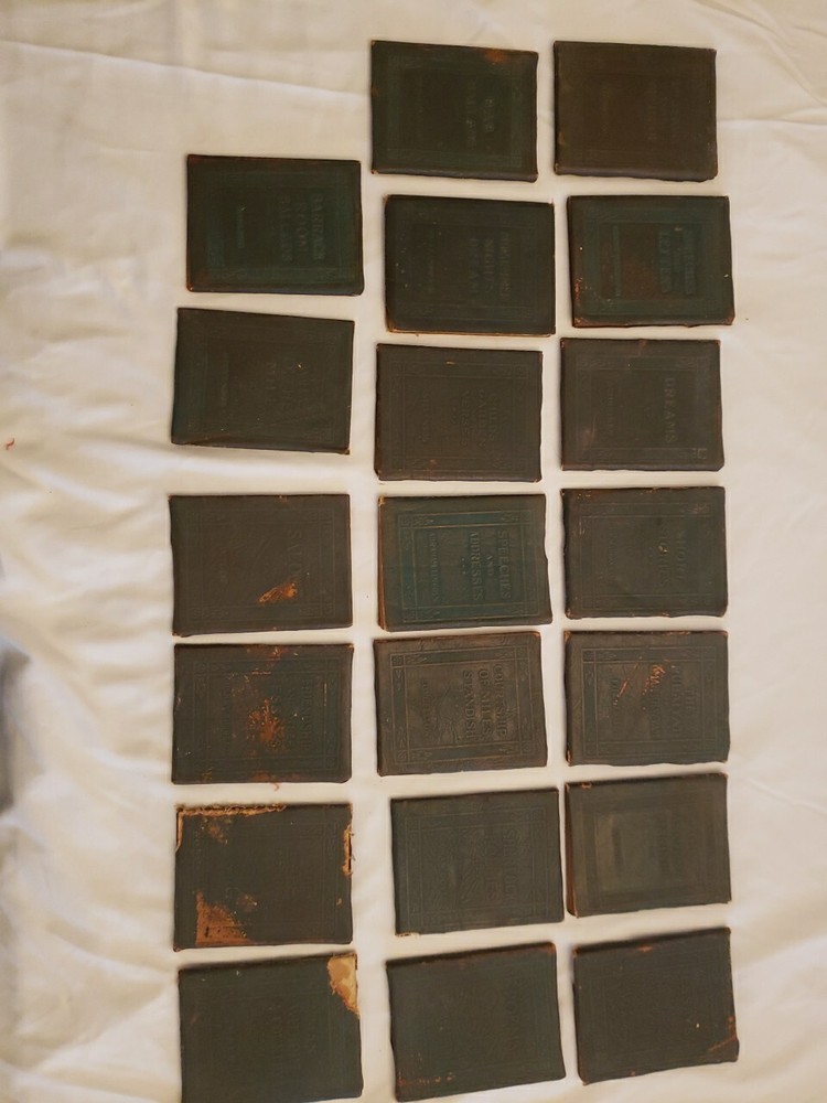 This is a 20 book set by various authors, published by Little Leather Library. The books are miniatures, bound in leather, and written in English. They cover a variety of topics within the field of antiques & collectibles. Each book is an original work, not a facsimile, and is not signed by the author. some books are not good condition buy as is | Please look at all pictures