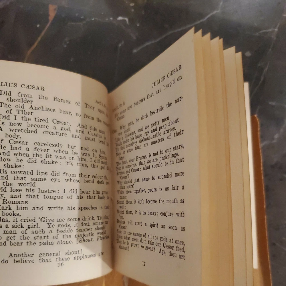 This tiny leather-bound Julius Caesar book is absolutely charming! The vintage look and feel make it a perfect collectible—so detailed and well-crafted. It’s a delightful little piece for any bookshelf or display. Love the old-world charm!
