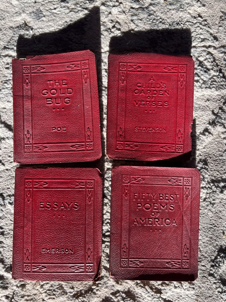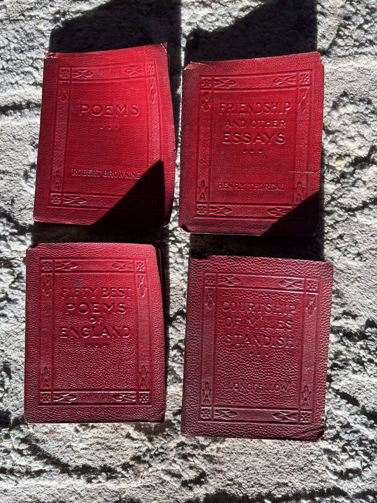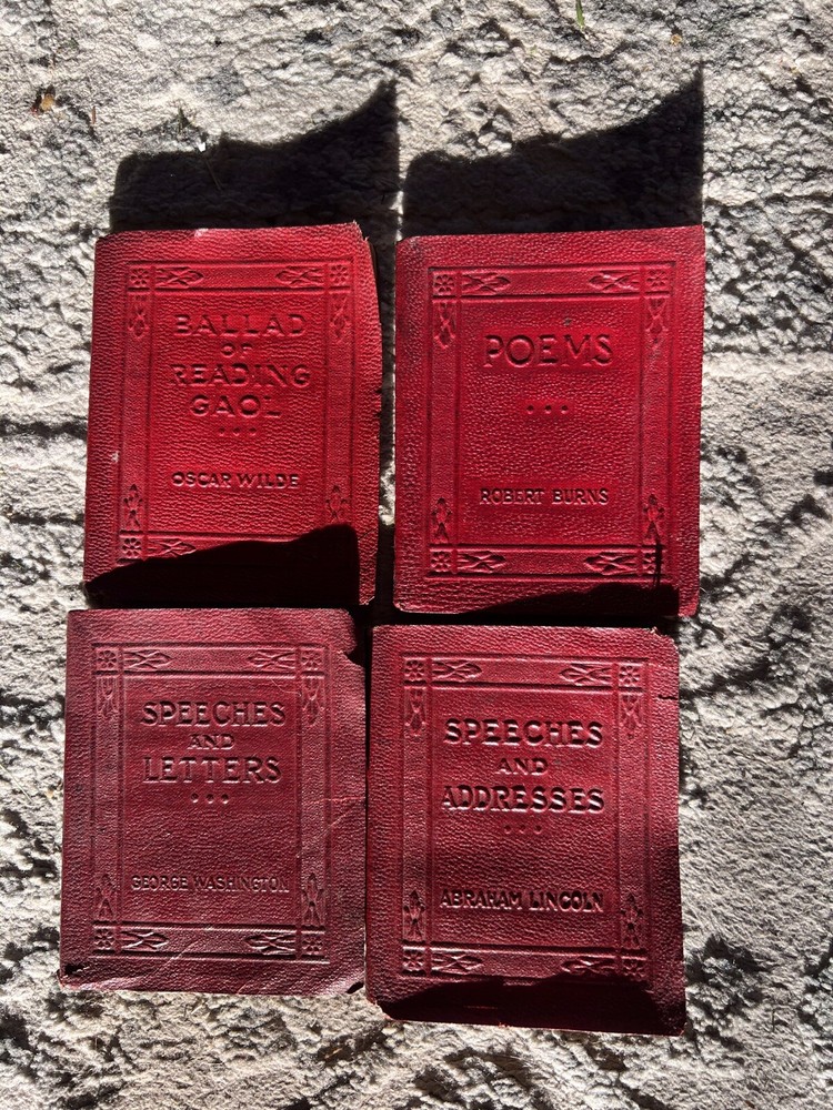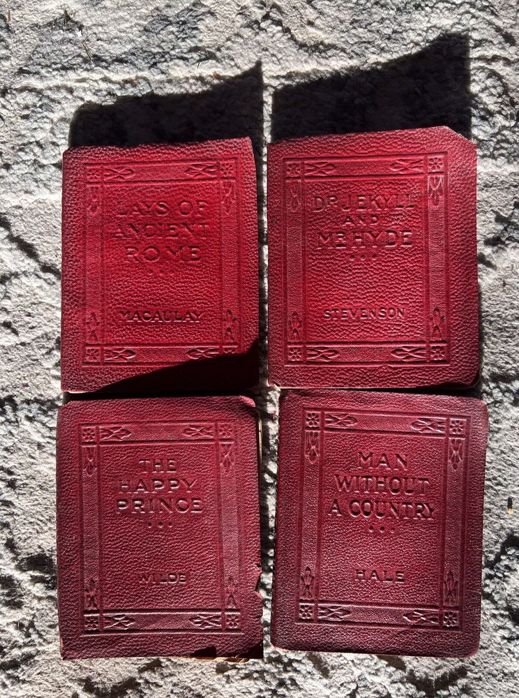Little Luxart Library ~ Miniature Books 22 + Little books, Leather ,vintage. Some detached from bindings, a few with light pencil marks of a couple of pages.