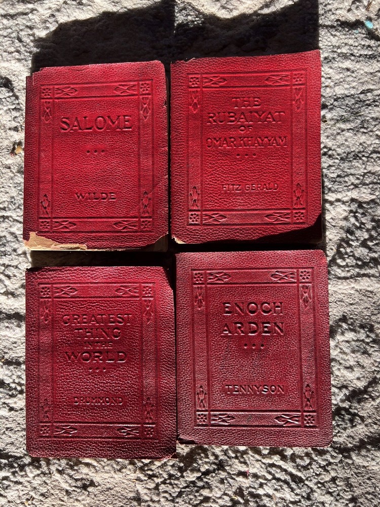Little Luxart Library ~ Miniature Books 22 + Little books, Leather ,vintage. Some detached from bindings, a few with light pencil marks of a couple of pages....