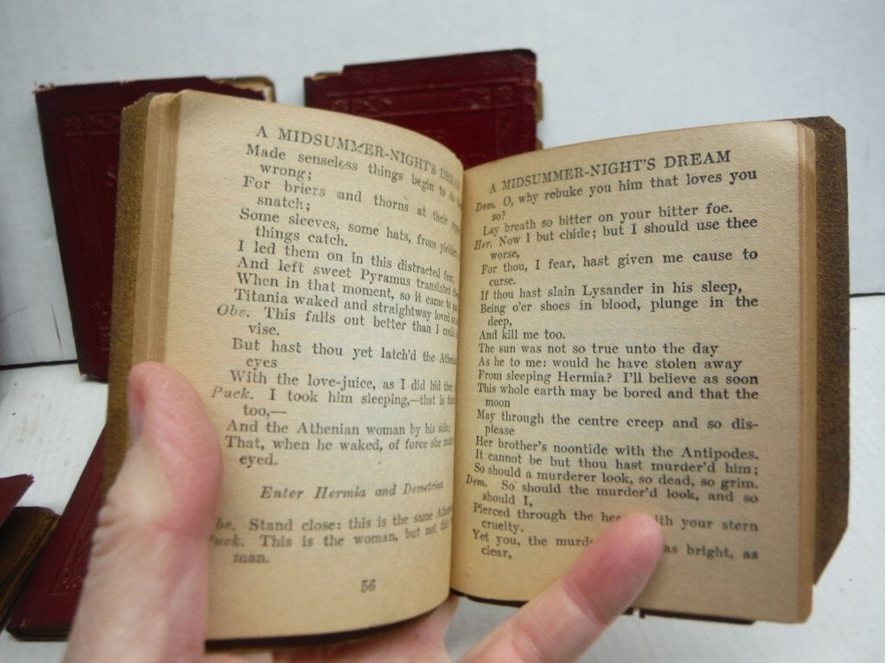 Imperial Books and Collectibles presents ... Little Luxart Library Set (6 Volume Set, incomplete). ISBN: Author: Shakespeare, William et al. Publisher: Robert K. Haas, Inc. (Formerly Little Leather Company) Release Date: 1925 Seller Category: Fiction:Adult: Qty Available: 1 Condition: Used: Good Binding: leather_bound Sku: 042552 Notes: Little Luxart Library Set (6 Volume Set, incomplete). Good red boards with embossed lettering along spine. Binding and hinges tight and square; Contents clean and unmarked except where listed below. No dust jackets. Wear at head and tail of spines. Says Little Luxart Library embossed on back of each. Size 4x 3.25". Pages browning from age, chipping on several spines. Pages attached to spine. Midsummer Nights Dream (browning first page, chipping back cover), Speeches Lincoln (dampstain last page, chippin back cover), Ballad of Reading Gaol (1st 12 pages wavy), The Rubaiyat, Sherlock Holmes (sticker on 1st page), and Poems Browning (dampstain first 2 pages). Don't forget to check out other great deals in our eBay Store!! Packaging: All items carefully packed to avoid damage from moisture and rough handling. All items shipped in a bag or bubble wrap, and protected by cardboard. Newer books are usually mailed in a cardboard book mailer, older items in a box, and small items in a bubble mailer protected inside by cardboard.