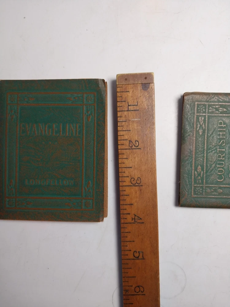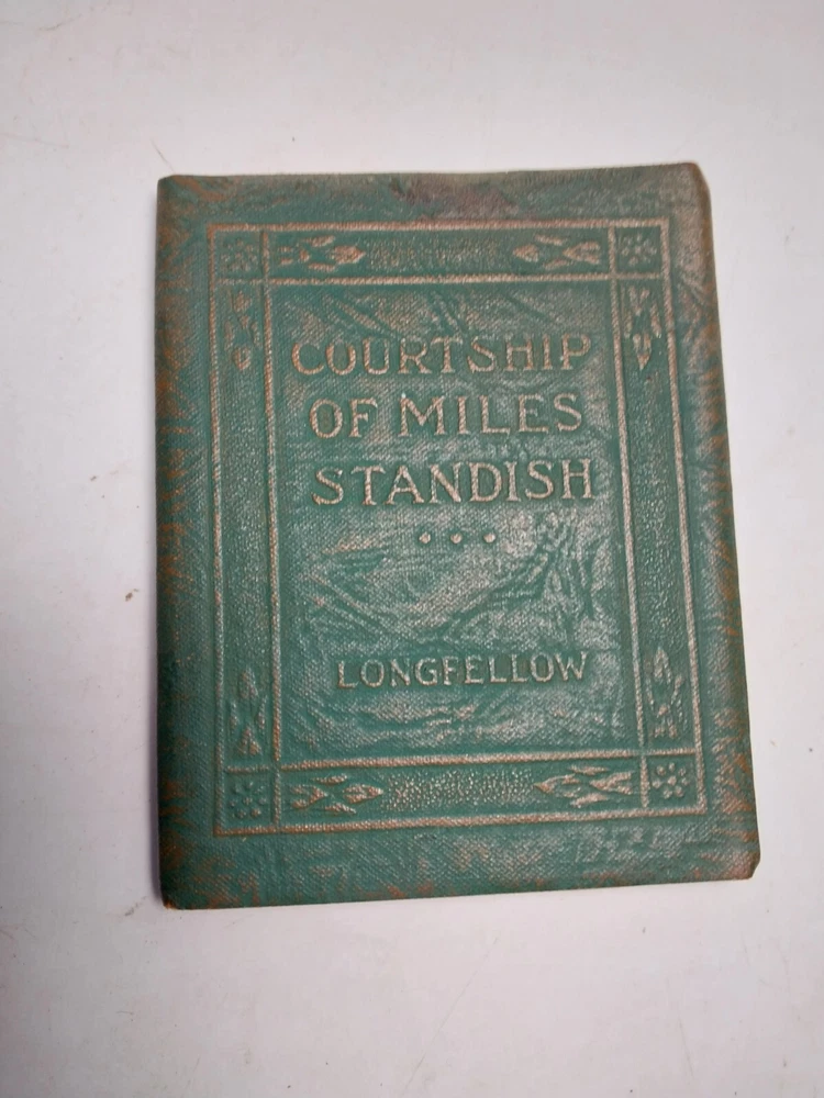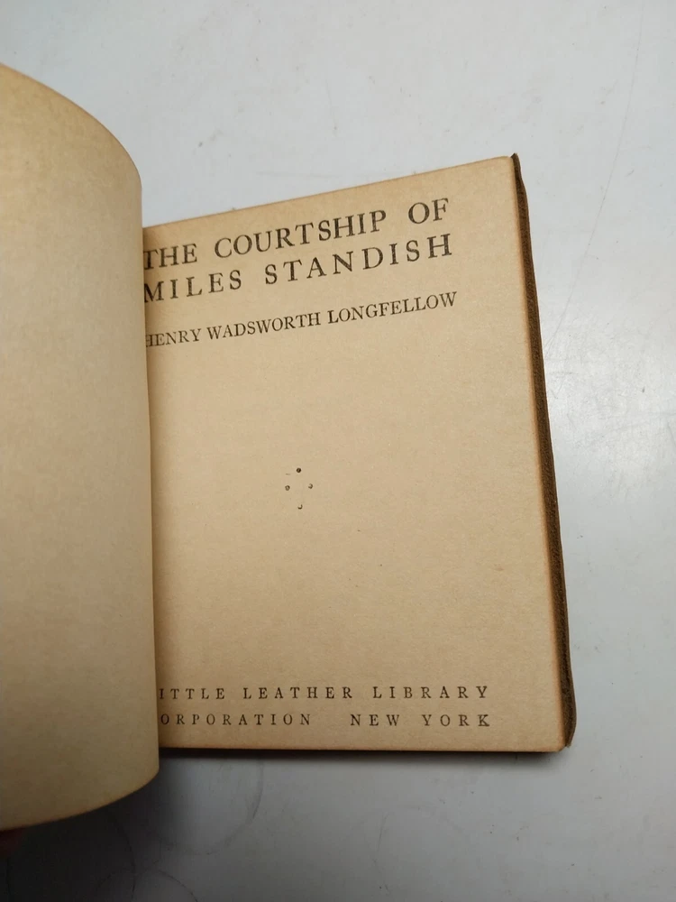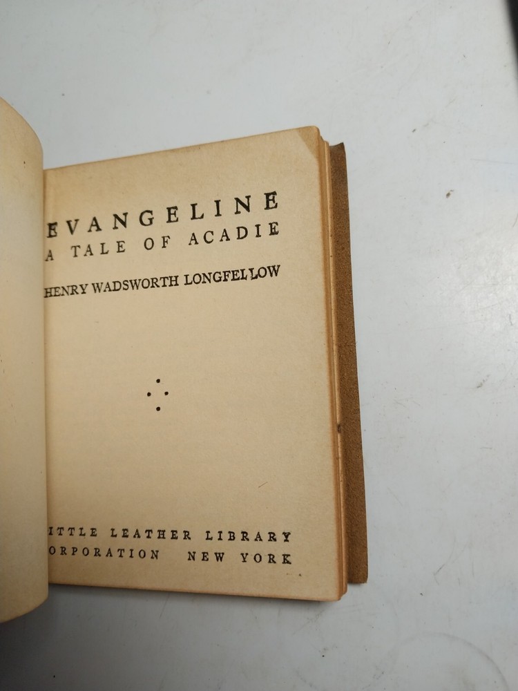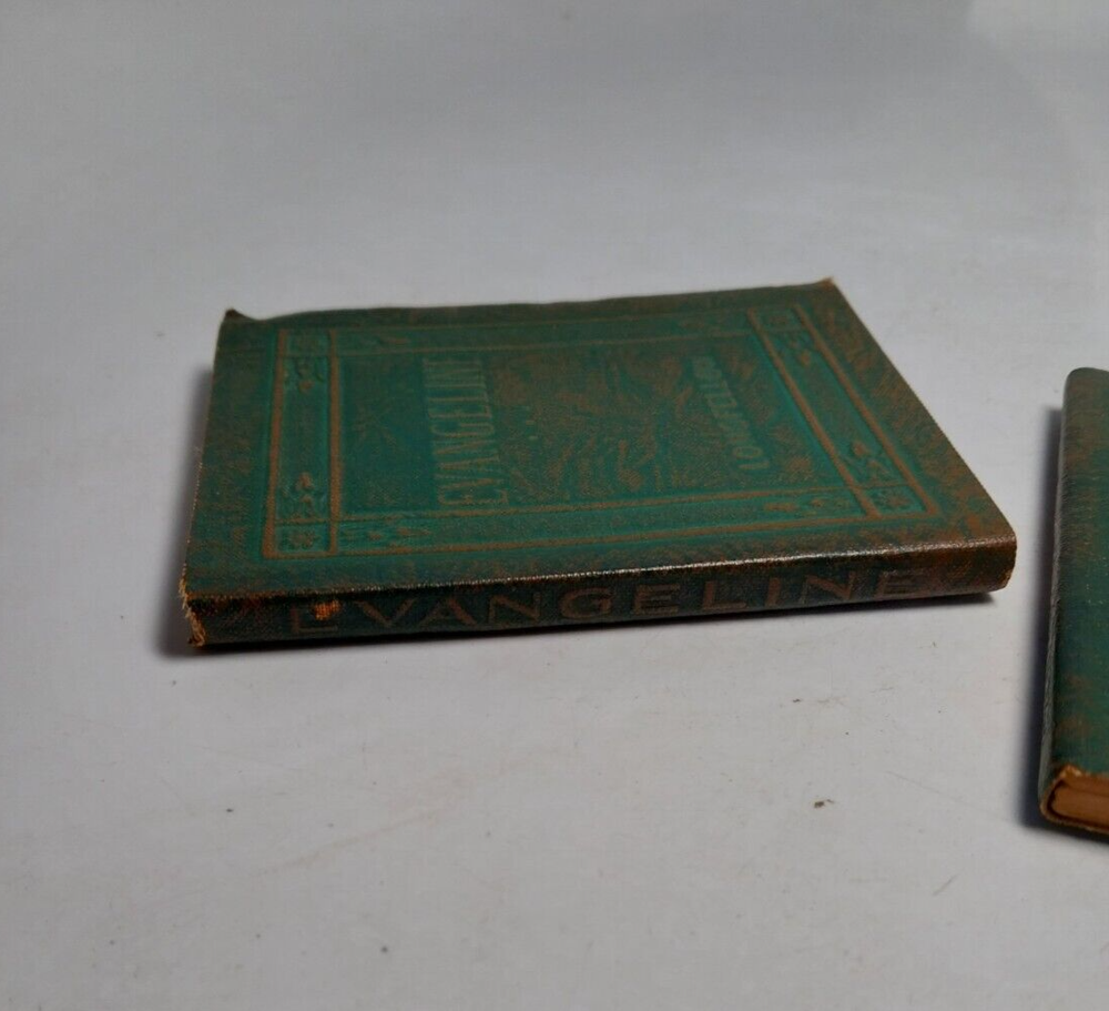 Longfellow Evangeline Courtship Miles Standish Little Leather Library 2 Book Set Book set measures approximately 3" x 4" and is in good used condition with some signs of age, use, and wear; age related toning to pages, please see photographs for condition details.