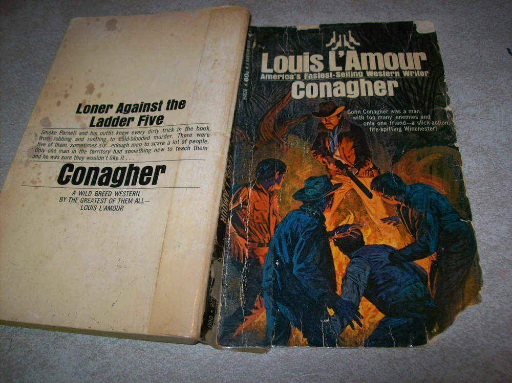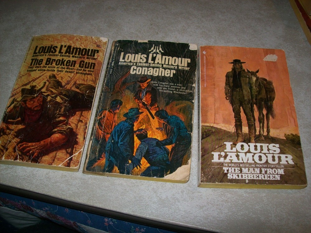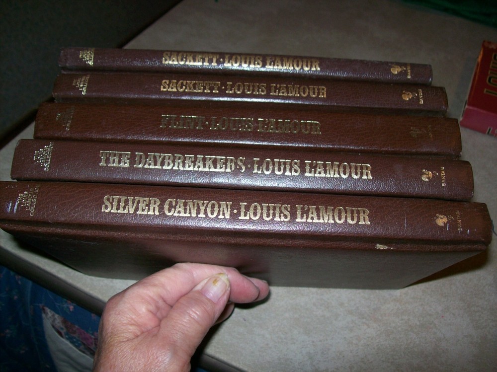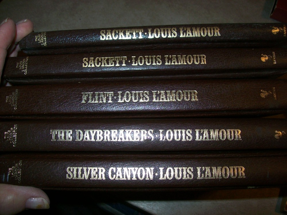 This offer is for 12 books. The photos show the condition. I will list other facts about them. The Brown Hardcover are: The Daybreakers March 1981 (excellent) Sackett April 1981 (like new) and another with writing inside Silver Canyon January 1981 (a bit of wet wrinkling on top) Flint February 1981 (brown staining on bottom probably got wet) Hardcover (Book club edition) The Haunted Mesa May 1987 (Jacket cover) Paperbacks Taggart - 15th printing May 1981 The Sackett Brand #7 16th printing 1979 Comstock Lode March 1982 The Man from Skibbereen October 1981 (stained pages) Conagher September 1969 former library The Broken Gun 8th printing former library This group is a good starter set for readers that haven't enjoyed these Westerns before. Enjoy all for a cheap price.