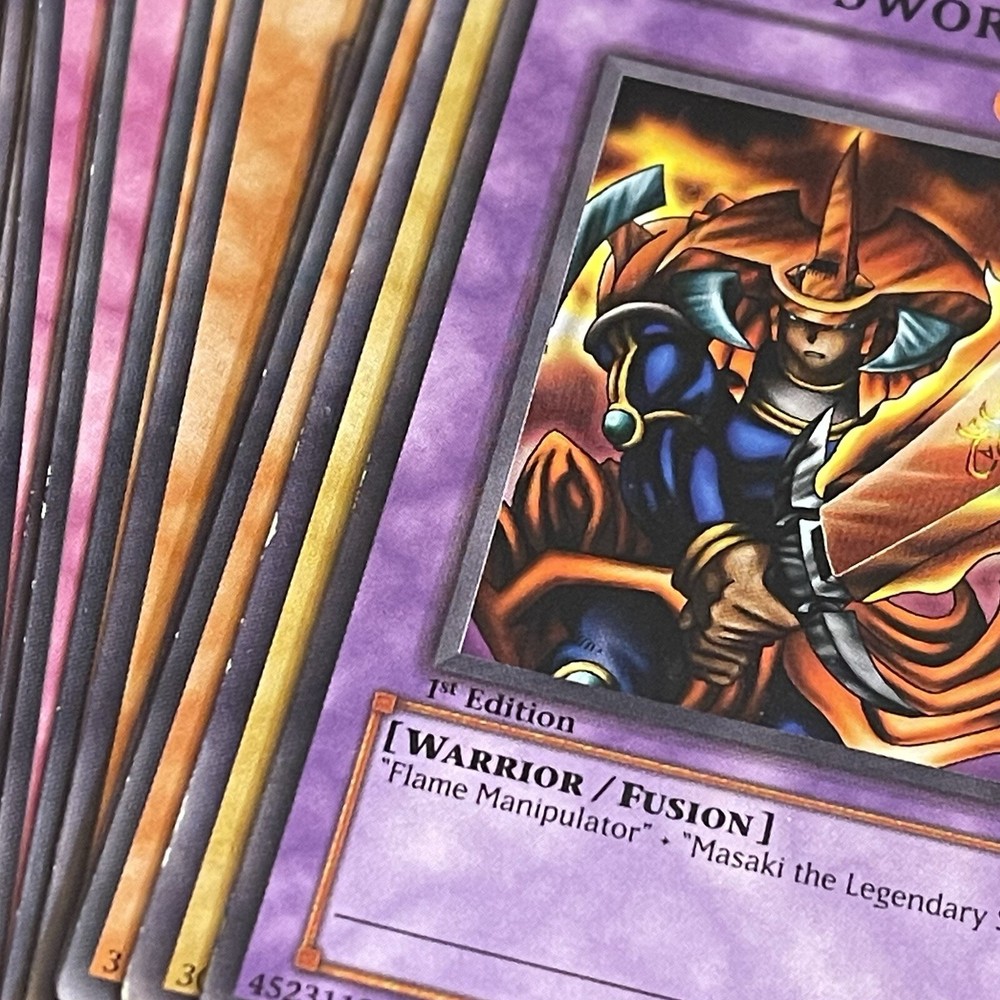Free shipping in Canada Lot Of 19 Vintage Yugioh Starter Deck Joey Cards features iconic characters like Gearfried the Iron Knight and a 1st edition Flame Swordsman. Manufactured in 2002 by Konami, these English language cards are perfect for collectors or players of the Yu-Gi-Oh! Trading Card Game. With a regular finish and printed on sturdy card stock, these cards are ideal for fans of the vintage era of the game. All used moderately played condition. No doubles.