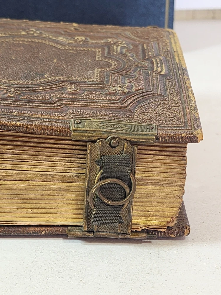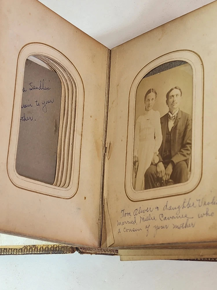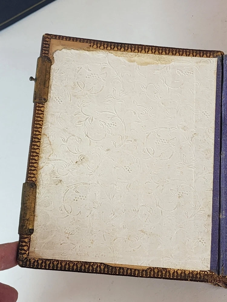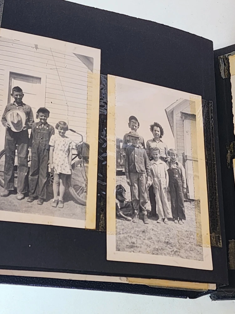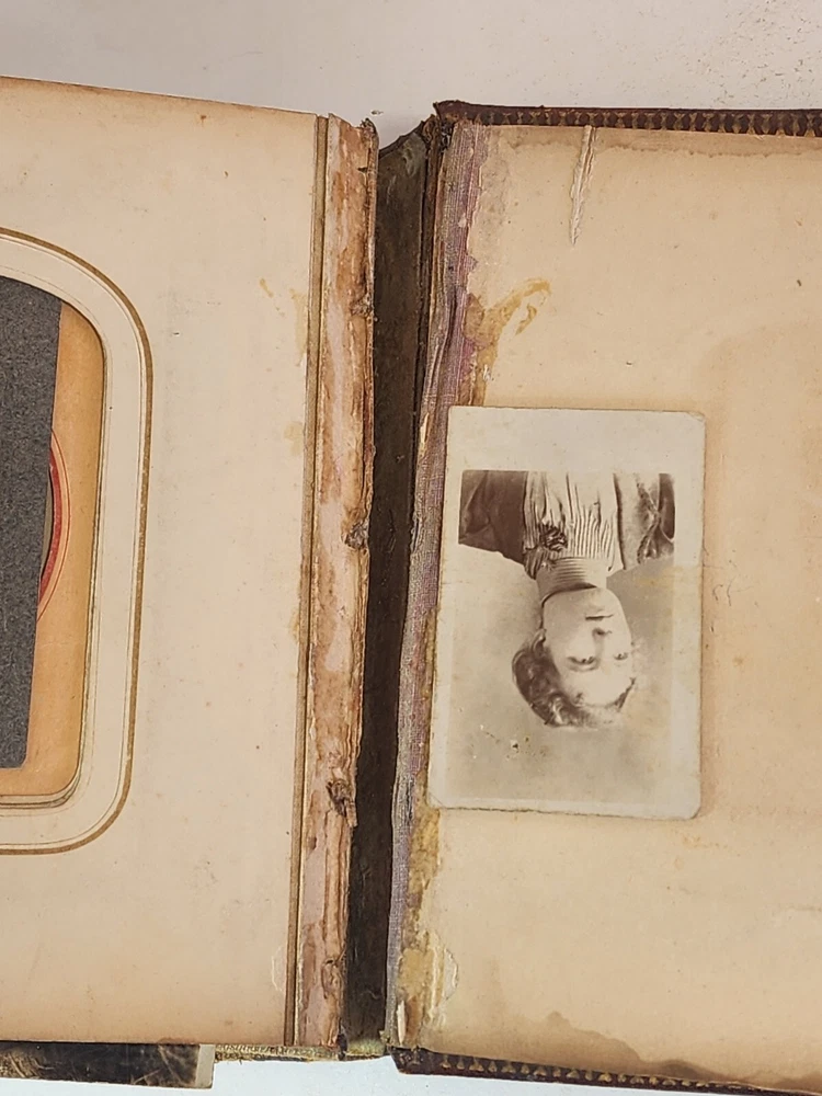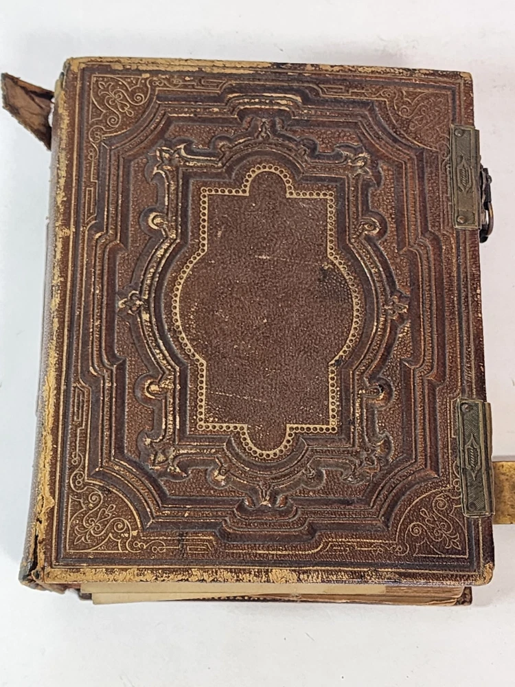 Introducing a charming vintage/ antique lot of two leather-bound photograph albums, adorned with brass. The albums are filled with an assortment of photographs and are sure to be treasured by collectors and enthusiasts alike. The albums are made of high-quality leather material that provides durability and a touch of elegance. The albums are an exceptional addition to any collection and a great conversation starter. The photographs in each album depict a range of subjects and are a testament to the era they represent. These albums are perfect for display and serve as a great reminder of the past.