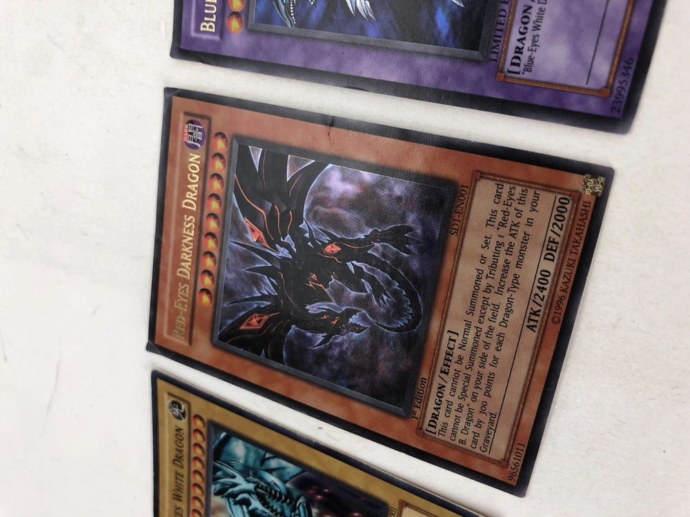 Lot Of 3 Rare Yugioh Cards Blue-Eyes Red White Darkness Ultimate Dragon Yu-Gi-Oh In good played condition…see photos
