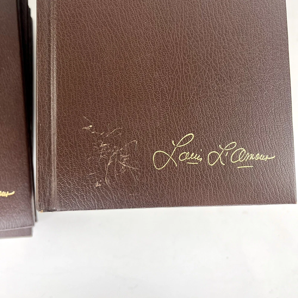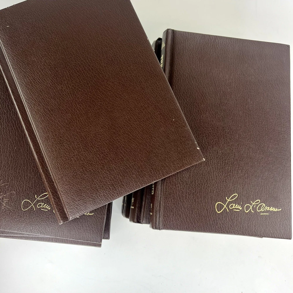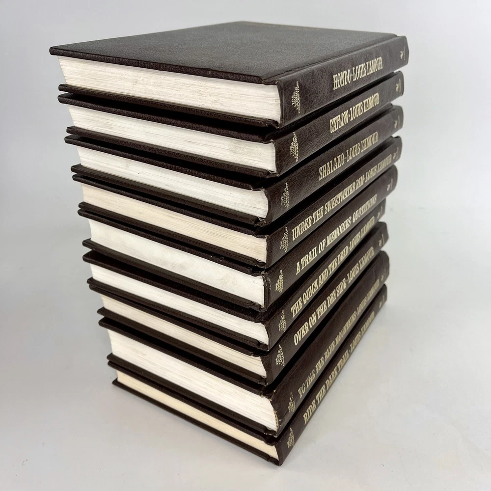 Lot of 10 Louis L'Amour Leatherette Bound Books. Good used condition – some age/use related wear like shelf wear/dings on edges. Some other flaws noted: 1 with scratches on the cover. Please see all photos (zoom/enlarge) for complete condition. Will be shipped USPS Media Mail.