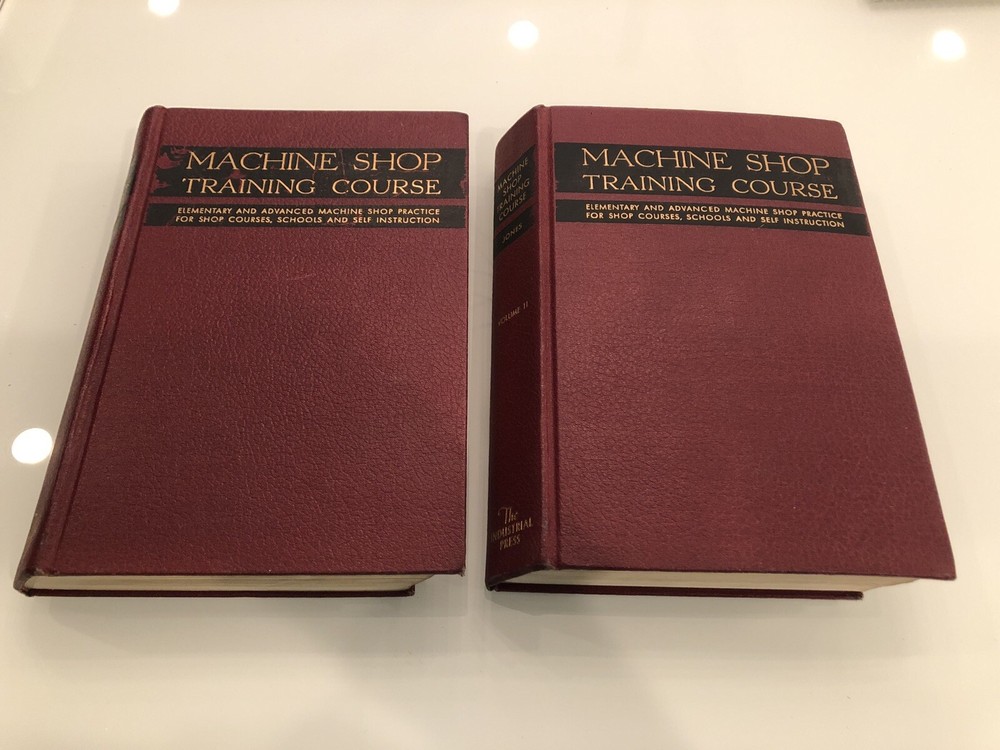 MACHINE SHOP TRAINING COURSE (set) VOLUME I & VOLUME II: ELEMENTARY AND ADVANCED. Fourth edition from 1951. One volume has marking inside cover (see photo). Spine intact....
