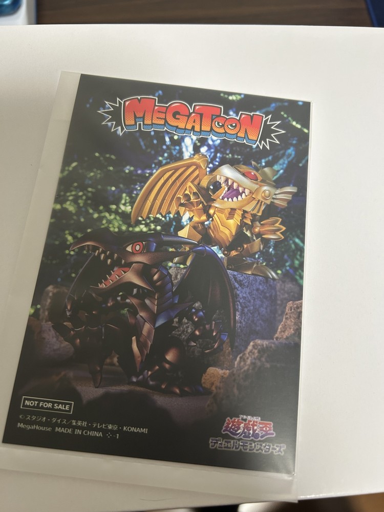 Description Product Details Cartoon-style arrangements of monsters and characters! Red-Eyes Black Dragon/The Winged Dragon of Ra from "Yu-Gi-Oh! Duel Monsters" are now available in the new MEGATOON figure series from Megahouse! They'll brighten up your room with their cool yet cute arrangements. This is a set of "Red-Eyes Black Dragon" and "The Winged Dragon of Ra." A limited edition photo card is included as a bonus when purchasing the set! Specifications Red-Eyes Black Dragon, Winged Dragon of Ra Total height approx. 125mm Total height approx. 130mm *Due to individual differences in the products, there may be slight differences in the listed specifications. Please be aware of this in advance. Material: PVC Color Winged Dragon of Ra: Ekosi Red-Eyes Black Dragon: Pinpoint All my products are 100% Authentic. Please feel free to contact us if you have any question. Shipping We ship using FedEx, DHL and Japan Post. Payment We usually ship within 5〜10 business days of receiving cleared payment. International Buyers - Please Note: Import duties, taxes and charges are not included in the item price or shipping charges.These charges are the buyer’s responsibility.Please check with your country’s customs office to determine what these additional costs will be prior to bidding/buying. These charges are normally collected by the delivering freight (shipping) company or when you pick the item up do not confuse them for additional shipping charges. I do not mark merchandise values below value or mark items as "gifts" - US and International government regulations prohibit such behavior.