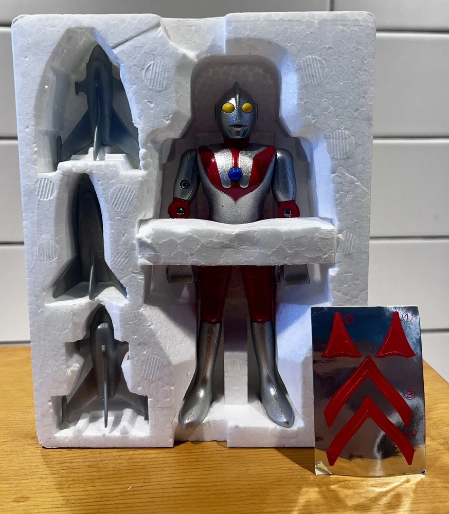 This Ultraman diecast figure is a must-have for collectors! The 6" poseable figure comes with three ships and original stickers, all in amazing condition. Made by Bandai Japan, the diecast and plastic construction feels premium. It's a perfect piece of 1980s nostalgia for fans of the classic Ultraman series. The attention to detail is impressive, and having all accessories included makes it even better. Highly recommended for vintage toy enthusiasts!