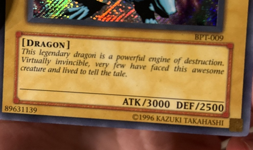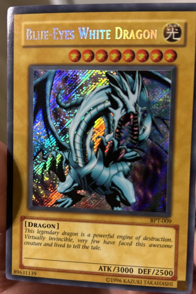 Elevate your Yu-Gi-Oh! TCG collection with the *MISPRINT Blue-Eyes White Dragon BPT-003 MP Reverse Secret Foil card. A unique addition for enthusiasts and collectors alike, this card features the iconic Blue-Eyes White Dragon in a striking foil finish. The card's secret rare rarity and reversal theme make it a standout piece, sure to draw attention in any collection or deck. Crafted by Konami, this ungraded card is a must-have for its misprint attribute, adding a layer of intrigue and collectibility. It maintains the classic attributes of the beloved Yu-Gi-Oh! series, with the blue color and normal card type, making it a fitting homage to the game's rich history. Add this curious collectible to your assortment and enjoy the unique flair it brings to your display or gameplay.