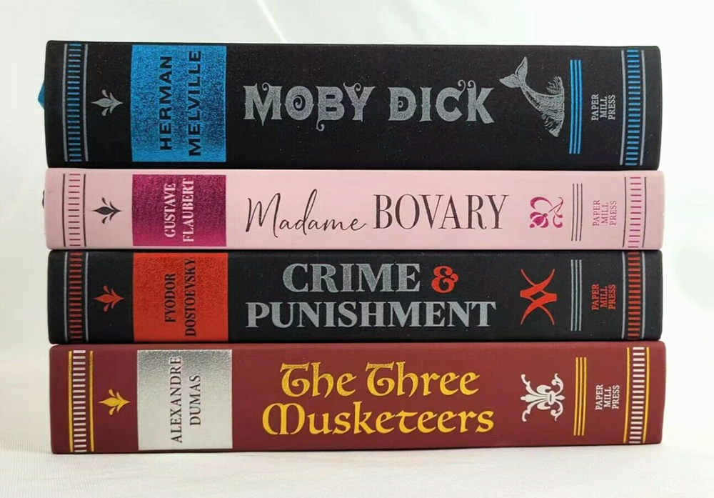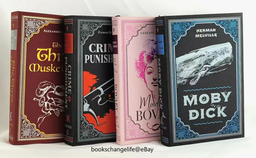 Set of 4 Faux leather bound Classics: Moby Dick Madame Bovary Crime & Punishment The Three Musketeers Brand New. Gift quality.