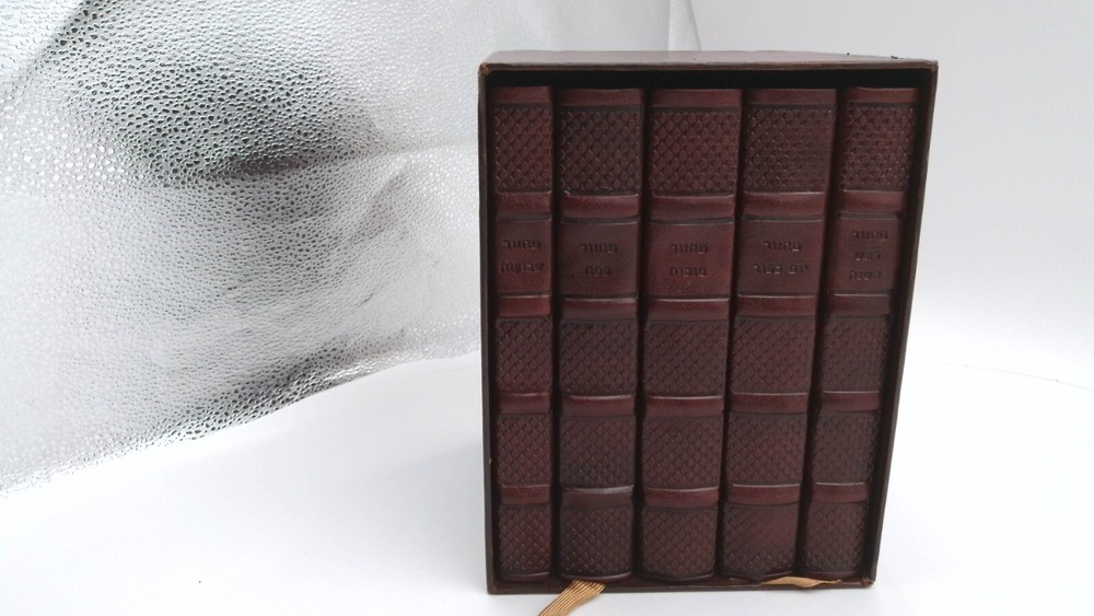 Machzor Antique leather bound Machzorim set Sefard מחזור כפתור ופרח אידיש מחזורים