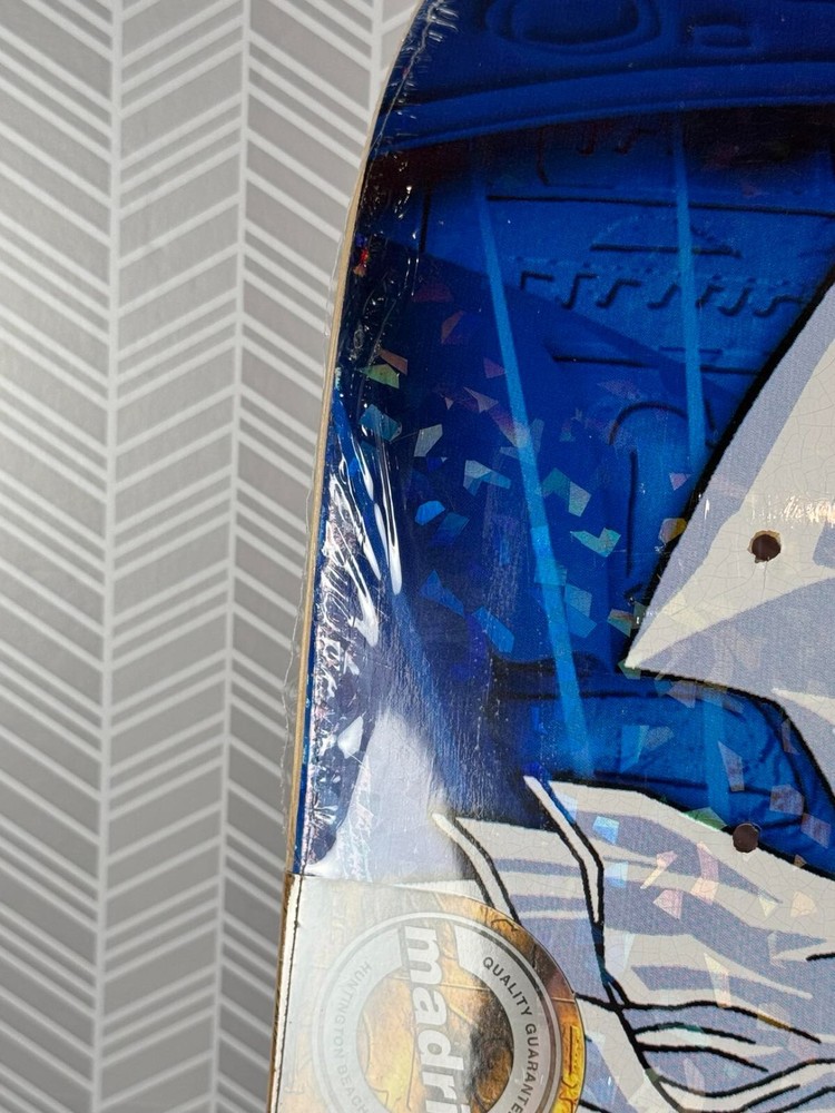 Elevate your skateboarding experience with the Madrid X Yu-Gi-Oh! Blue Eyes White Dragon Deck. This 8.25-inch skateboard deck is a masterpiece, combining the iconic Yu-Gi-Oh! theme with the sleek and stylish design that Madrid is known for. Whether you're cruising the streets or hitting the skate park, this deck is sure to make a statement with its unique art theme. Crafted with excellence, this deck is manufactured in Japan, guaranteeing top-notch quality and durability. Ideal for enthusiasts and collectors alike, the deck is not signed, ensuring that it remains a pristine piece of art. The Madrid X Yu-Gi-Oh! deck is a must-have for those looking to add a touch of creativity and performance to their skateboarding adventures. Item may have some some condition issues please look at the pictures. We to make sure everything is detailed and we will answer any questions you might have before purchase. Thank you for being so interested. All items are packed with extreme care. We record the entire packing process and put security labels to ensure your item arrives packed as you expect and untampered. Please feel free to reach out if you have any questions.