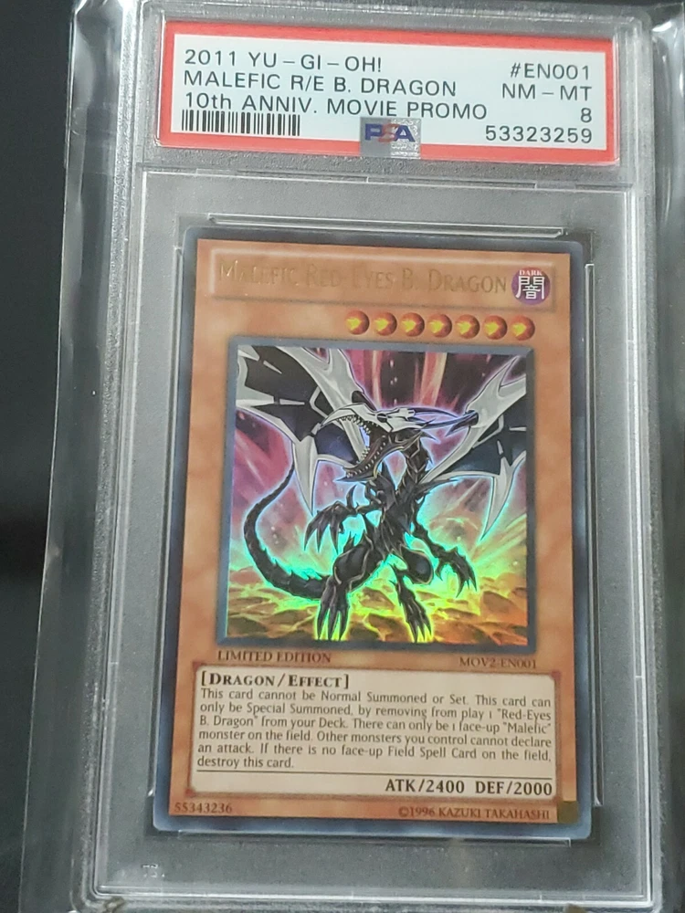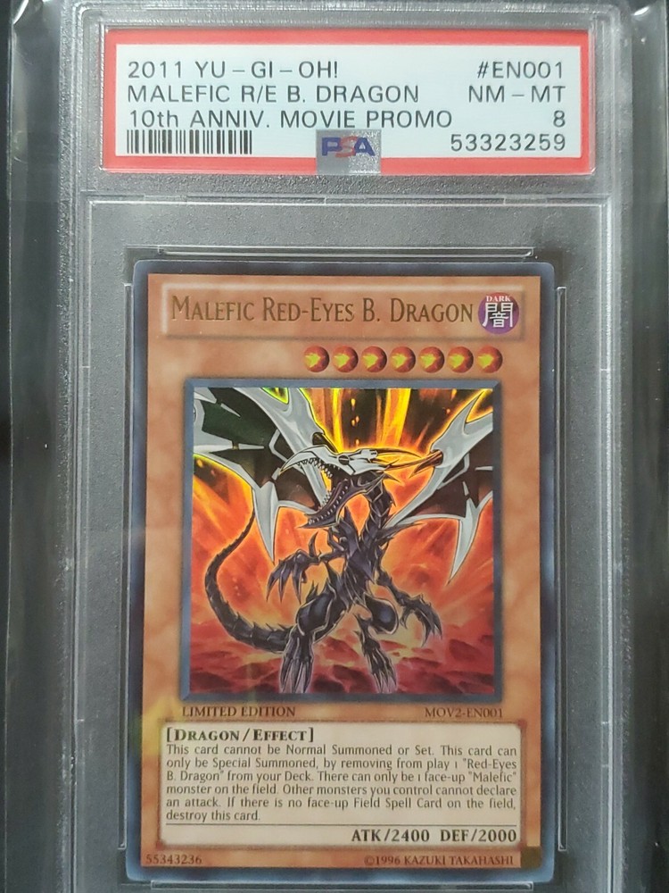 Malefic Red-Eyes B. Dragon Ultra Rare YuGiOh! Limited Edition MOV2-EN001 PROMO. Extremely low pop. One of three in the world with only 3 above an 8 aswell. Sweet card for a red eyes collector
