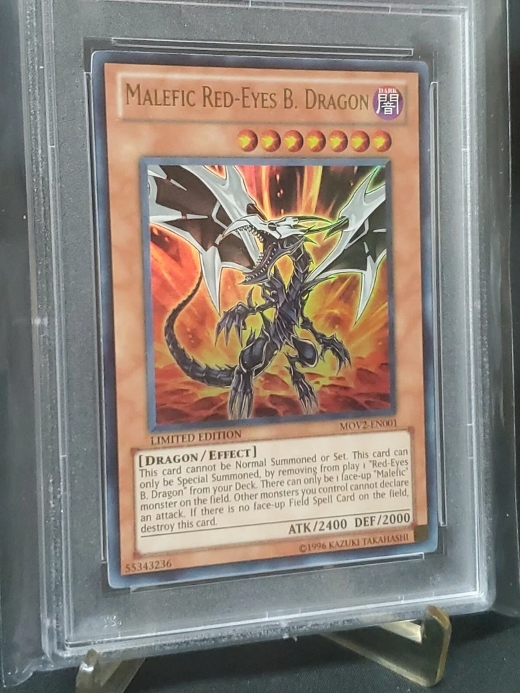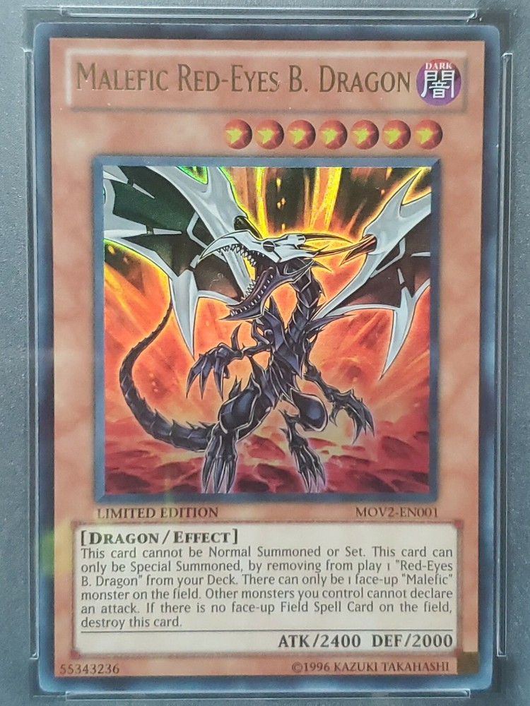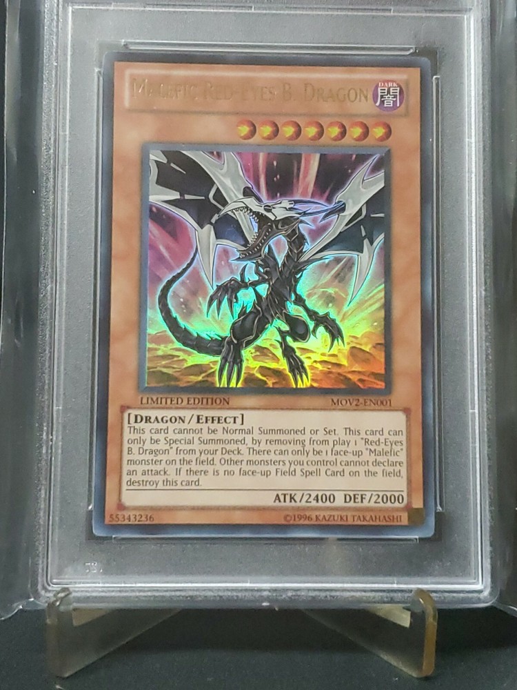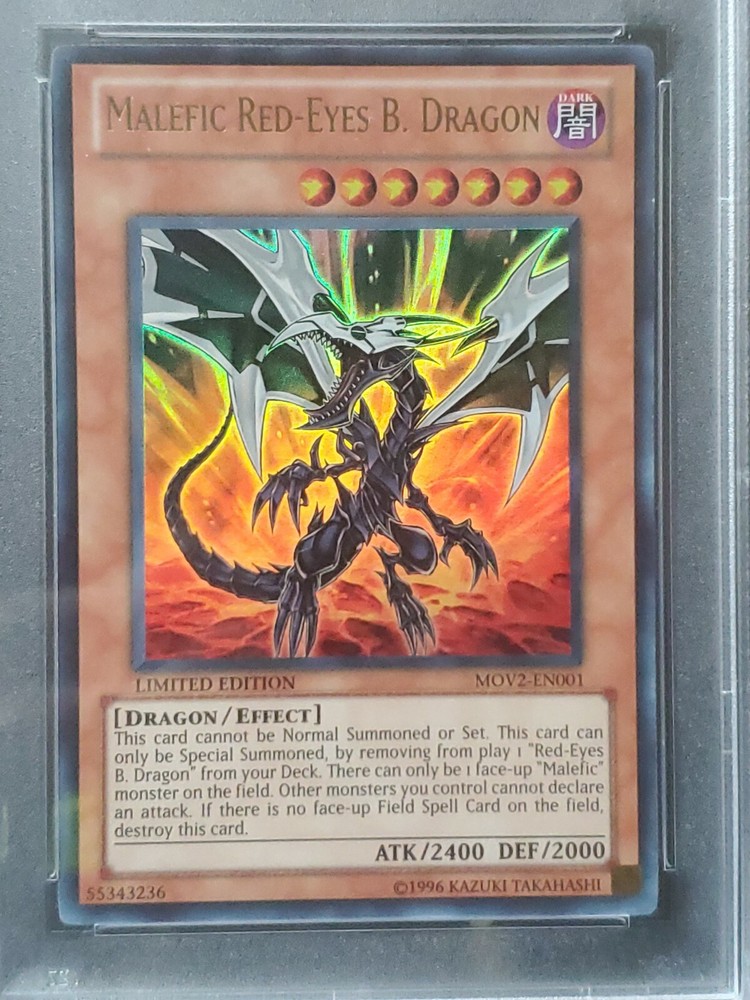 Malefic Red-Eyes B. Dragon Ultra Rare YuGiOh! Limited Edition MOV2-EN001 PROMO. Extremely low pop. One of three in the world with only 3 above an 8 aswell. Sweet card for a red eyes collector...