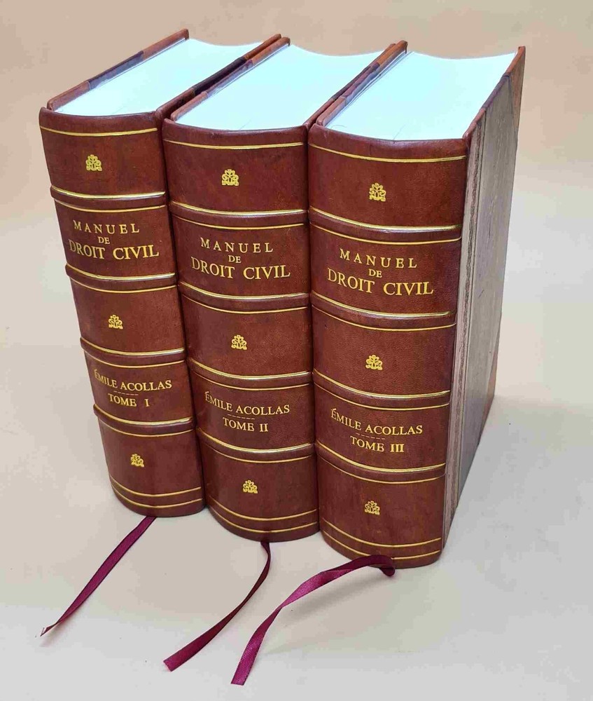 About the Book: Complete Title: Manuel de droit civil, commentaire philosophique et critique du code Napol?on, contenant l'expos? complet des syst?mes juridiques 2e ?dition. Volume 1-3 1874 [Leather Bound] Author: Acollas, ?mile Edition: Reprinted by Gyan Books in 2022 with the help of original edition published long back [1874] . Language: Francais No. Of Pages: 2834 Volume: Volume 1-3 Binding: HALF LEATHER binding features a leather spine and corners with the remaining cover in Raxine or Marble Paper. CHOOSE ANY LEATHER COLOR OF YOUR CHOICE WITHOUT ANY EXTRA CHARGES JUST CLICK ON IMAGES FOR OPTIONAL COLORS AND INFORM US YOUR CHOICE THROUGH MAIL WITH COLOR CODE. Customization Options Available Upon Request We provide 'Extra customization*' on request with additional charges. Please note that customization charges are applied in addition to the listed item (Book) price. Customization Extra Charges Sample Image FULL LEATHER BOUND WITH GILDED EDGES (ANY COLOR) USD 35 MULTI-COLOR LABELS (Spine) USD 12 PERSONALIZED IMAGE EMBOSSING ON THE FRONT COVER USD 40 FOLIO EDITION (12x18.5 inches) BIGGER SIZE Six times of the given price Points to note before booking order: SPECIAL DISCOUNT FOR BULK ORDERS PLEASE CONTACT US. UNIQUE LEATHER-BOUND Edition on Spine and Corners along with Golden Leaf Printing on Round Spine. This book is: Printed in Black & White (If a color edition is available you may request it by mail for a nominal charge.) Sewed binding for longer life Printed on high quality Natural Shade Acid Free Paper Professionally processed without changing its content Genuine Leather is being used for Binding Handcrafted Golden Leaf Printing. Round Spine Handmade Marble paper use for end paper Raise bands Bookmark Ribbon As these are old books each page is processed manually to make them readable. But in case some pages are blur or missing or have black spots the same are re-printed as it is to keep the authenticity of the book. In case of multi volume sets please note that the above listing is for a single volume only. (To order multiple volumes please contact us separately). We request you to understand that these leather-bound books are work of art and hence require time to go through different process to be the masterpieces that they are. We usually take 20 business days as handling time to dispatch shipment. We consider special request for a special occasion. Craftsman based in India prepared this book and shipped from different stock locations around the Globe. PRODUCT DISCLAIMER: Please be aware that because leather is a natural material slight discoloration or change in texture may be visible. ABOUT US GYAN BOOKS INTRODUCING A REMARKABLE LEATHER-BOUND EDITION, METICULOUSLY CRAFTED BY THE ESTEEMED INSTITUTION: RARE BIBLIO A UNIQUE LEATHER-BOUND BOOK FOR ELITE READERS/COLLECTORS OF OLD RARE AND BESTSELLING BOOKS. An ORIGINAL LEATHER is being used for Binding this Book on SPINE AND CORNERS along with GOLDEN LEAF PRINTING {Half Leather}. We deal into reprinting of the masterpieces crafted by authors around the world. We are proud to say that we have a collection of over 25 million books and our collection includes books that are as old as 200 years and hence are considered as RARE BOOKS. We are pioneer in this field having experience of 40 years. We also undertake printing and Leather Binding jobs of other books. Thesis printing and Leather Binding is one of our important services. Many publishers and authors approach us for their books to bind in our unique leather binding format for their special customers. Our craftsmen are active in this job since generations. Restoration of old books is our expertise. We are known by our Customization options. We have many leather color options in our bucket. The whole process is done manually so that it gives you the same feeling of old book.
