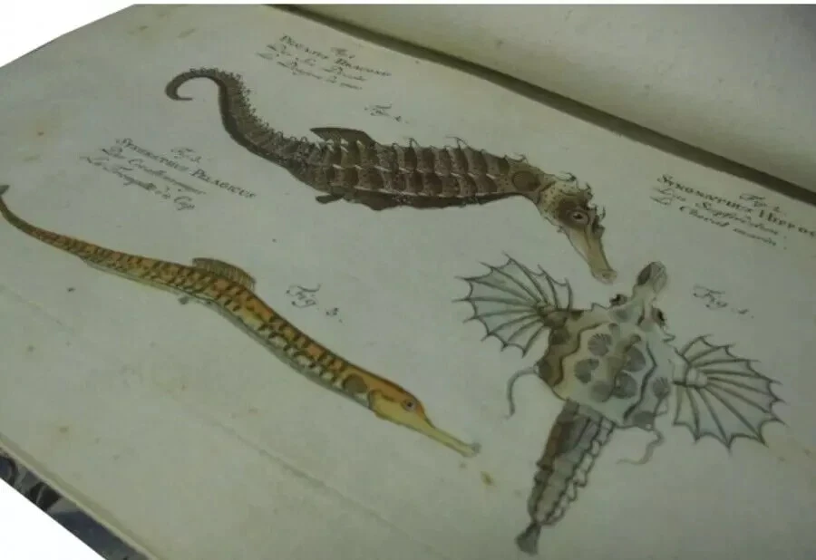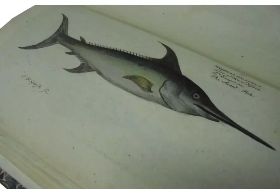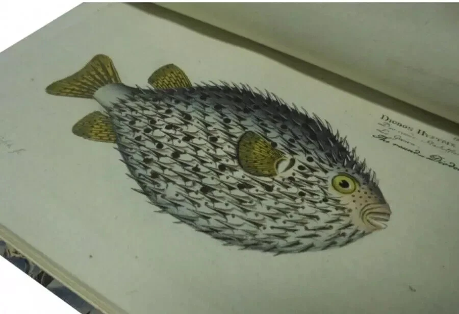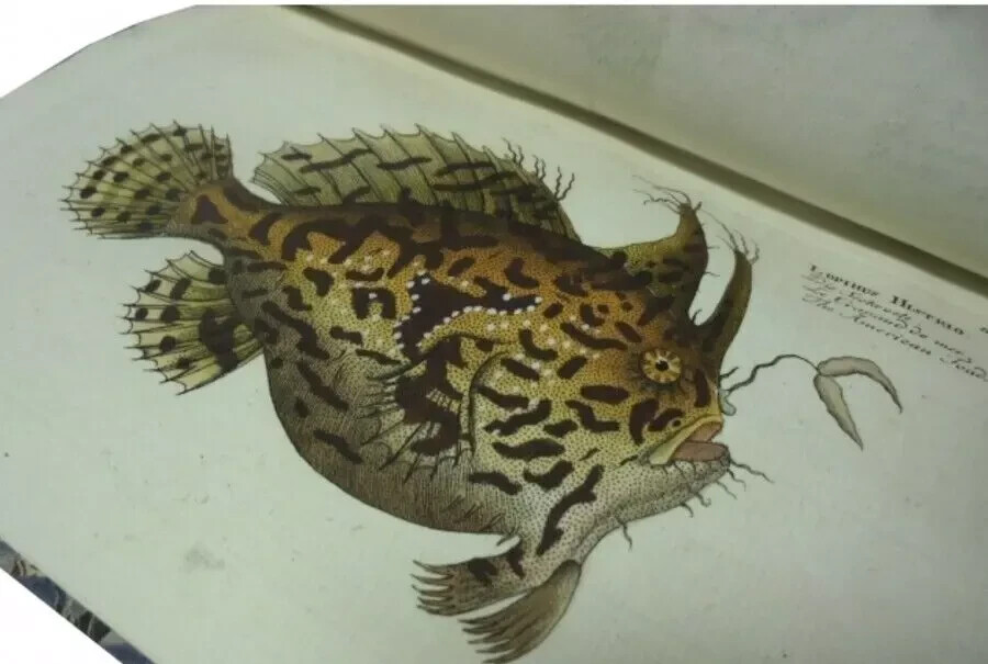 Description An 18th-century German ichthyology book, Ichthyologia, sive Historia Piscium (French edition). This book, authored by the ichthyologist Marcus Elieser Bloch (1723–1799), introduces approximately 200 species of fish known to the world at the time, accompanied by illustrations. Unlike traditional fish illustrations, which depicted fish lying on the ground, this book omits the background and focuses solely on precise depictions of the fish. These illustrations had a significant impact on later ichthyological works, making this book historically important in the field of fish classification and illustration. Artist : Marc Elieser Bloch Publisher : chez l'auteur Year : 1796 Language : French 22 x 15 cm , 6 volumes Condition : Very Good. Bound in leather at the spine ends (vols. 5 and 6 refurbished). Illustrations 216 hand-coloured etchings. Vols. 1-4 cover worn. Bookplate affixed to the front endpaper. Minor age-toning to small edges. Generally in good condition. Shipping We use DHL and Japan Post for our shipments, and usually arrive within 4 to 15 days after shipment. International Buyers - Please Note: Import duties, taxes, and charges are not included in the item price or shipping cost. These charges are the buyer's responsibility. Please check with your country's customs office to determine what these additional costs will be prior to bidding or buying. Thank you for your understanding.