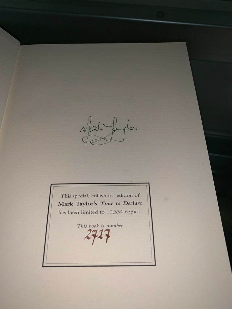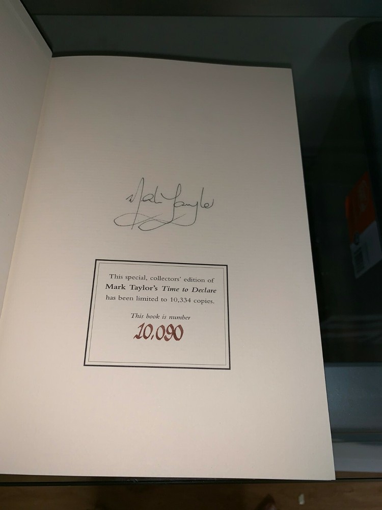 Mark Taylor Former Australian Captain Hand signed book Time To Declare - Leather Bound Limited Edition This special, collectors' edition has been limited to 10,334 copies. It’s hard to think of any sportsman held in more affection and respect than Mark Taylor, recently retired captain of the Australian Cricket Team, and Australian of the Year. "Time To Declare" is Mark’s autobiography, and one of the most sought-after works of non-fiction published last year. True to Mark’s character, his book is honest, warm, often very funny and always deeply perceptive. These are the memoirs of one of cricket’s greatest minds, written at the height of his powers, and as such "Time To Declare" rates as one of the most important cricketing autobiographies of the century. Yet Mark’s appeal is not limited to cricket fans. He’s a true Australian hero, a role model for a whole generation of young Australians, and as such this book will be eagerly read far outside the world of cricket. From early childhood in country NSW, through to the extraordinary 334 not out at Peshawar, Mark’s story will enthral readers across the nation. We have 2 books available They are limited edition number 2,717 and 10,090 Authors Mark Taylor ISBN 9780732910174 Published 01 / 01 / 2001 Released 01 / 04 / 2005 Binding Hardcover Dimensions 185 x 340 x 55mm THIS ITEM COMES WITH 1. CERTIFICATE OF AUTHENTICITY 2. PHOTO PROOF OF PLAYER(S) SIGNING THE ITEM 3. LIFETIME MONEY BACK GUARANTEE FOR AUTHENTICITY OF ITEM 4. OFFICIAL TAX INVOICE FROM ACN/ABN REGISTERED COMPANY 5. CONFIDENCE YOU ARE PURCHASING FROM A REGISTERED BUSINESS WITH 20 YEARS EXPERIENCE. Note : From 1st September 2017 all of our ASM Certificates of Authenticity will be emailed to buyers as PDF files. COA may arrive before or after the item has been received. They can be saved or printed so customers have permanent record to keep for both insurance and authenticity purposes. Please also note that Australian Sports obtains autographs of multiple items from players and photo proof may be of player signing a wide range of items which may or may not include this item. We will however make every effort to include the exact photo proof of signing your item if we have it available. We do guarantee the item is authentic and welcome it to be forensically tested where it will pass. Australian Sports Management (ASM) is an accredited member of the Australian Memorabilia Association. Note : Photo proof and COA will ONLY be supplied to winning bidder (once paid). This preserves the authenticity of our item and signing proof. Please do not ask for photo proof to be sent without bidding or paying for item. This protects us and also you, the buyer, as you have the original signing photo to match your item. All our items have 100% money back guarantee, plus you have eBay buyer protection. We only sell 100% genuine and authentic autographed sports memorabilia.