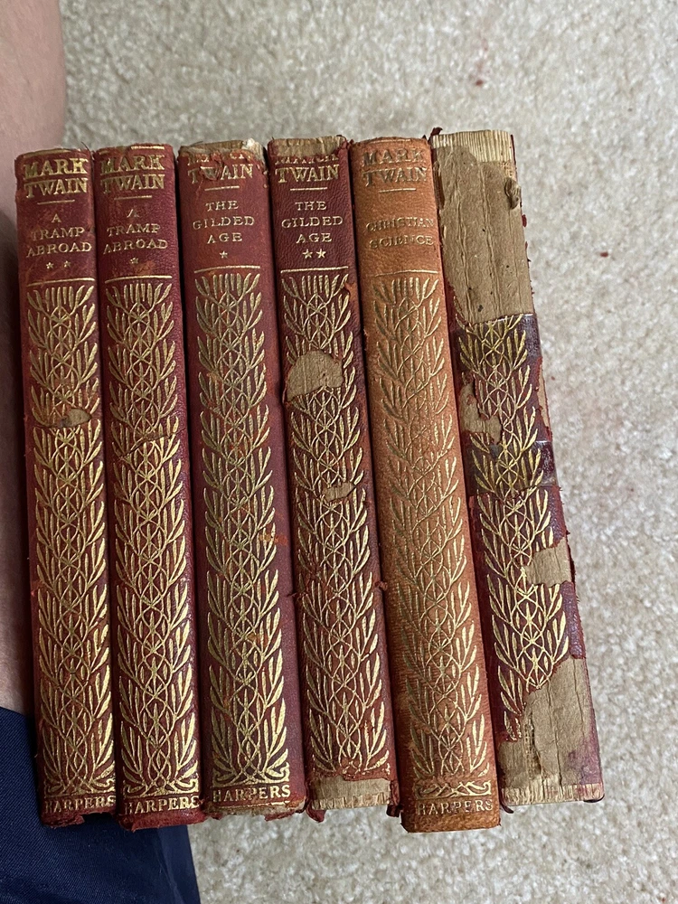 Mark Twain Book Set-A Tramp Abroad Huckleberry Finn, The Gilded Age, 1 More....