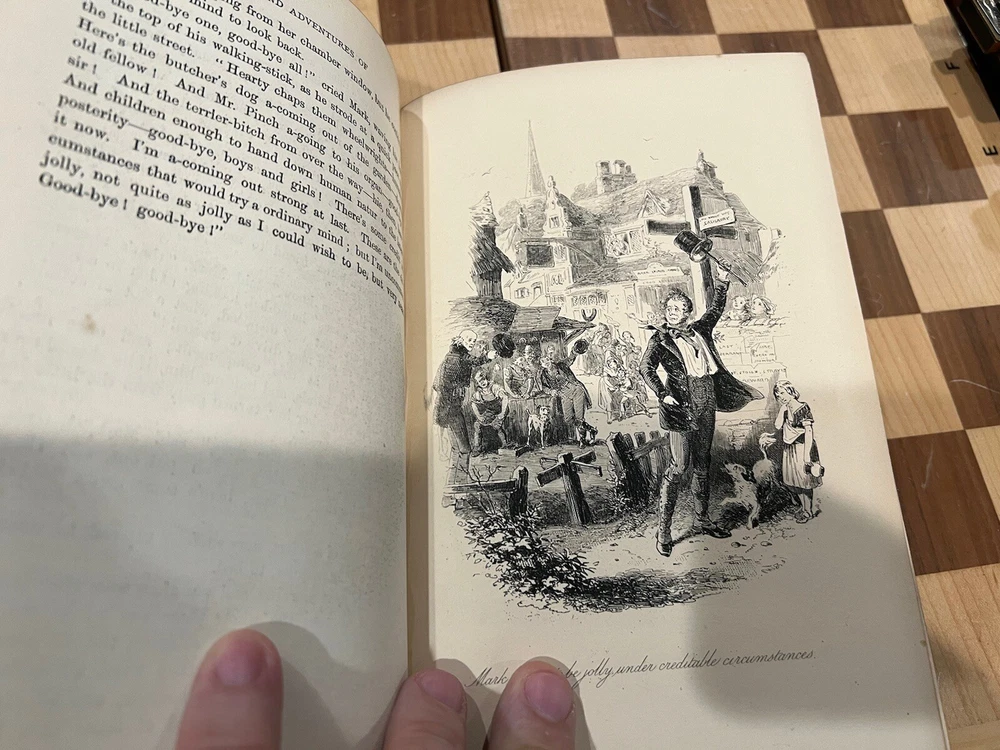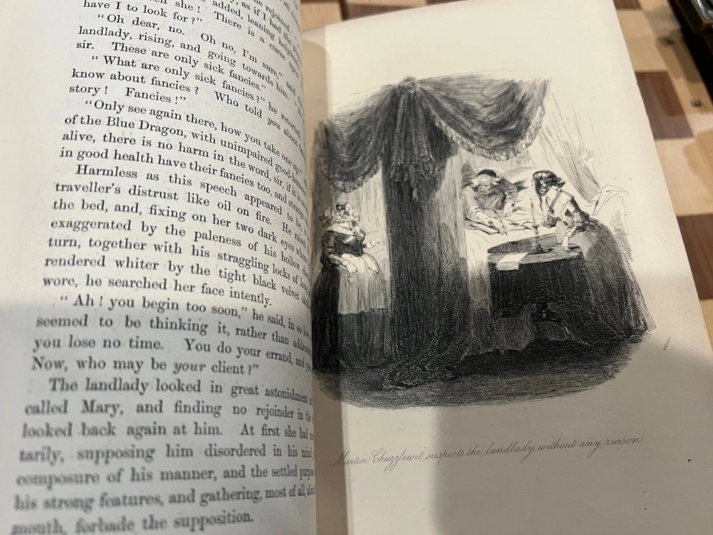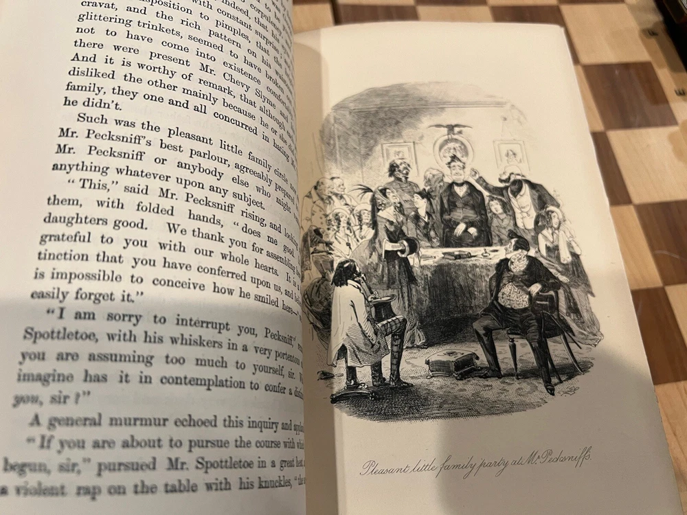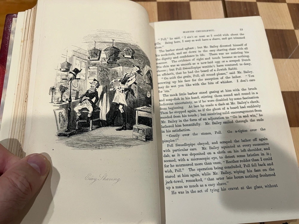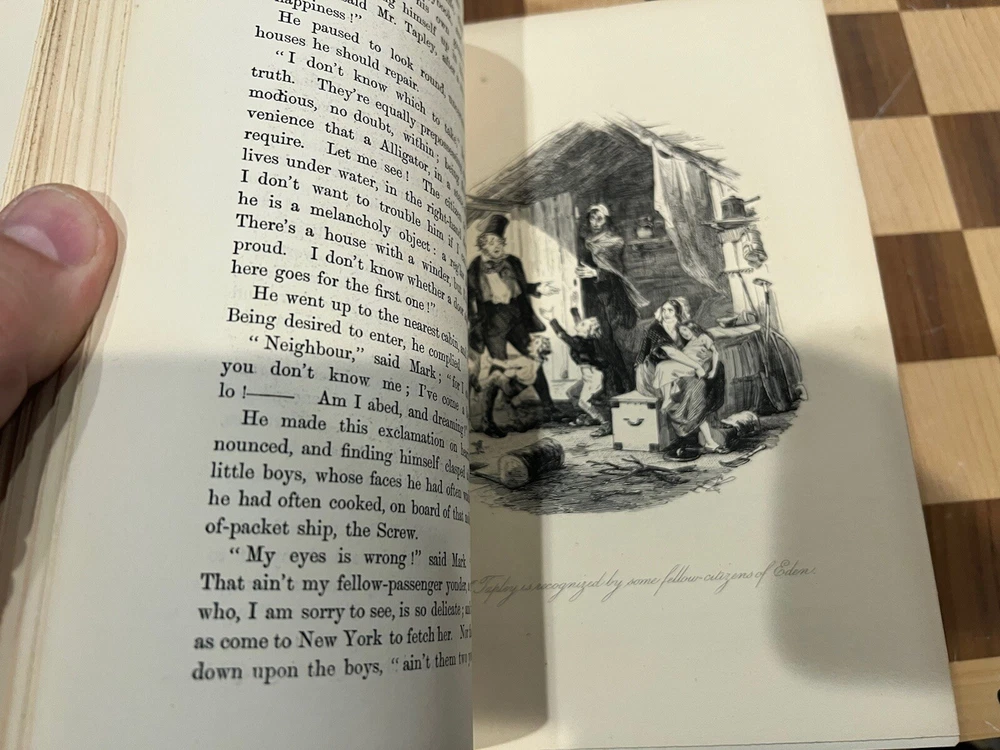 Very good condition half leather Chapman and Hall 2 volume set with lithos. This is a rare, undated 1871-1905 half leather set of Martin Chuzzlewit by Charles Dickens, published by Chapman & Hall. The book is written in English . The binding is made of leather, (half leather , half cloth ) which adds to the charm and collectibility of the book. It is a great addition to any antique or rare book collection.