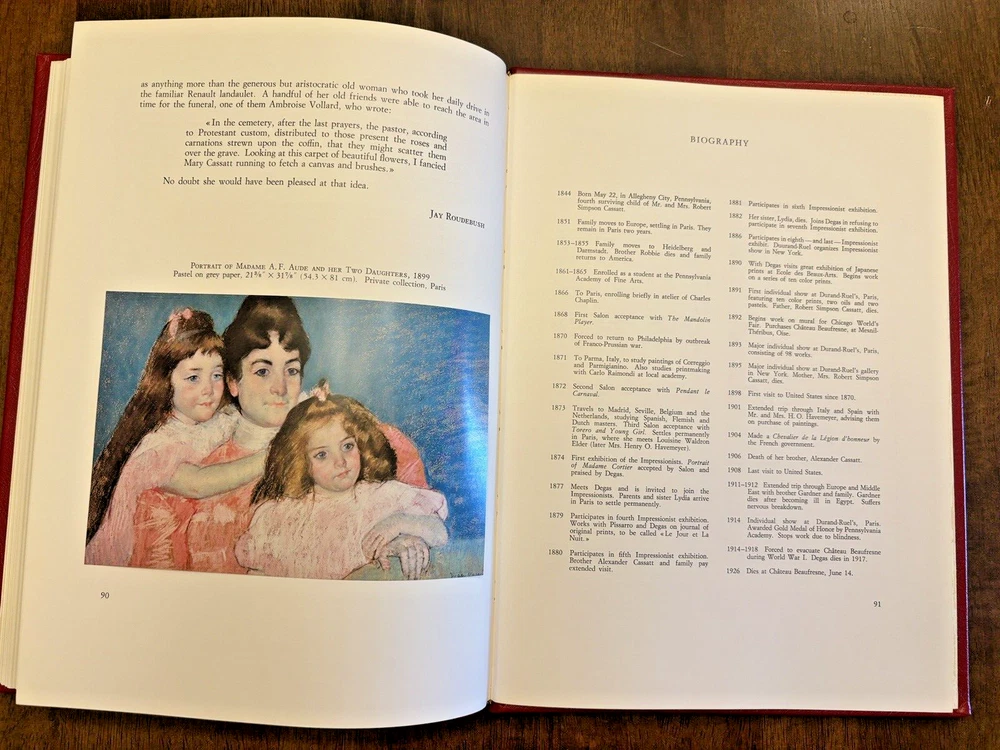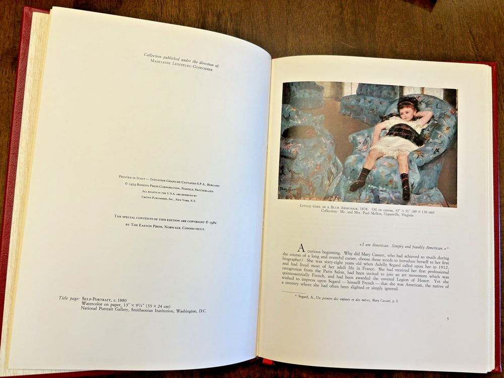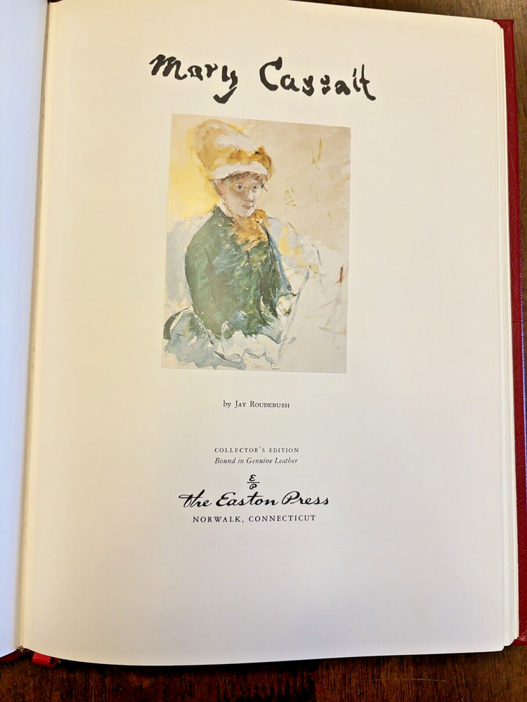 This vintage book from 1982 is a must-have for art enthusiasts and collectors alike. Featuring American impressionist Mary Cassatt, this limited edition collector's item is a beautiful addition to any collection. The leatherbound hardcover cover is adorned with 22K gold inlay and illustrated with exquisite detail. Written by Jay Roudebush and published by Easton Press in Norwalk, Connecticut, this book is a true gem. It's a great artists edition and a perfect way to delve into the art history of impressionism in America. The book is in its original form and is not signed. It's a fantastic piece of history and a great conversation starter.
