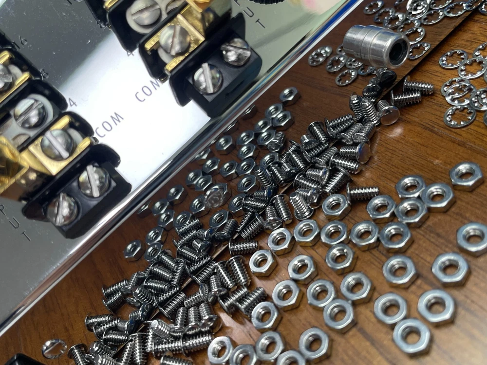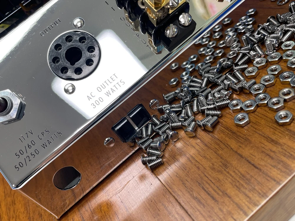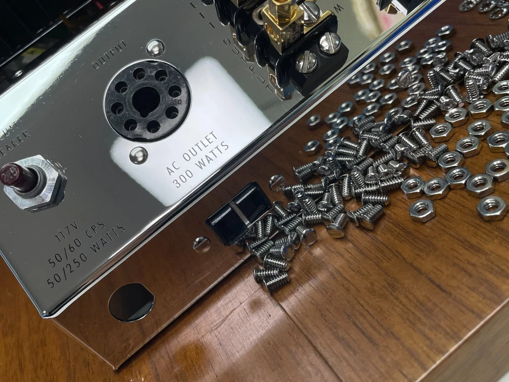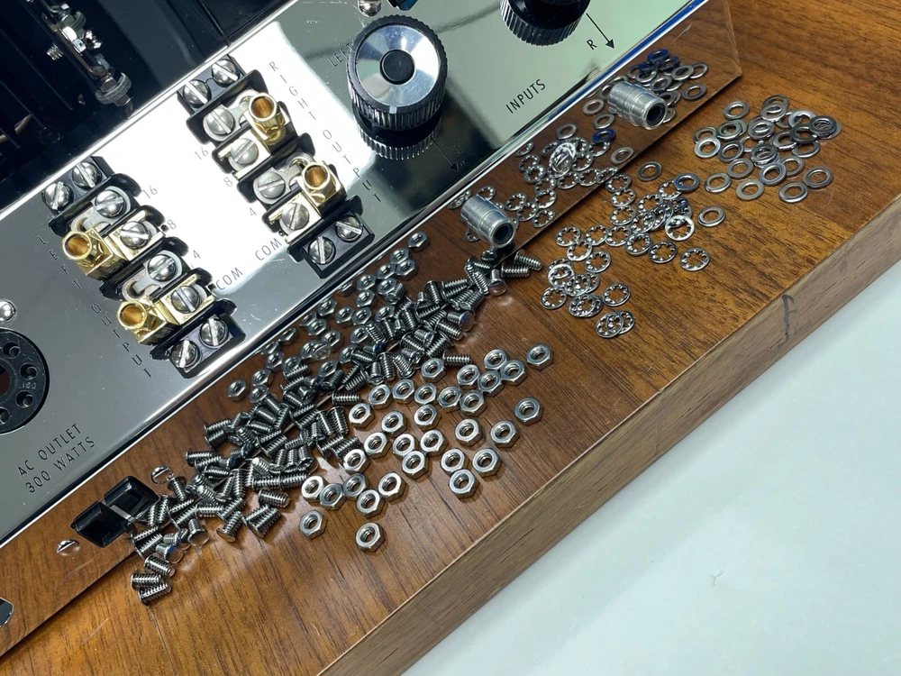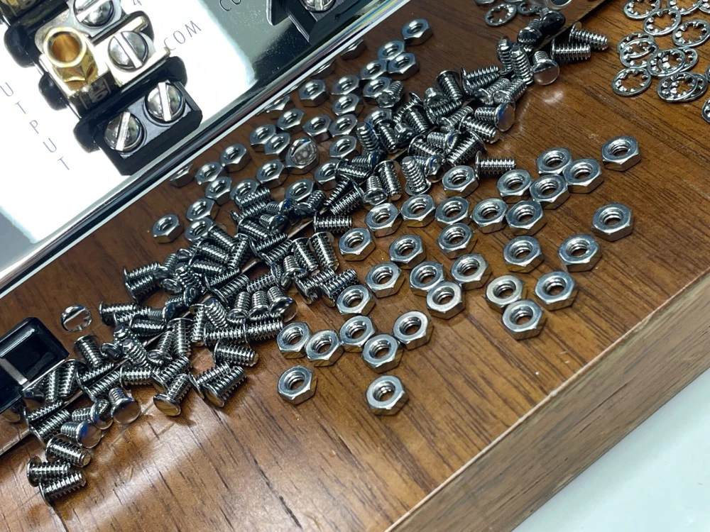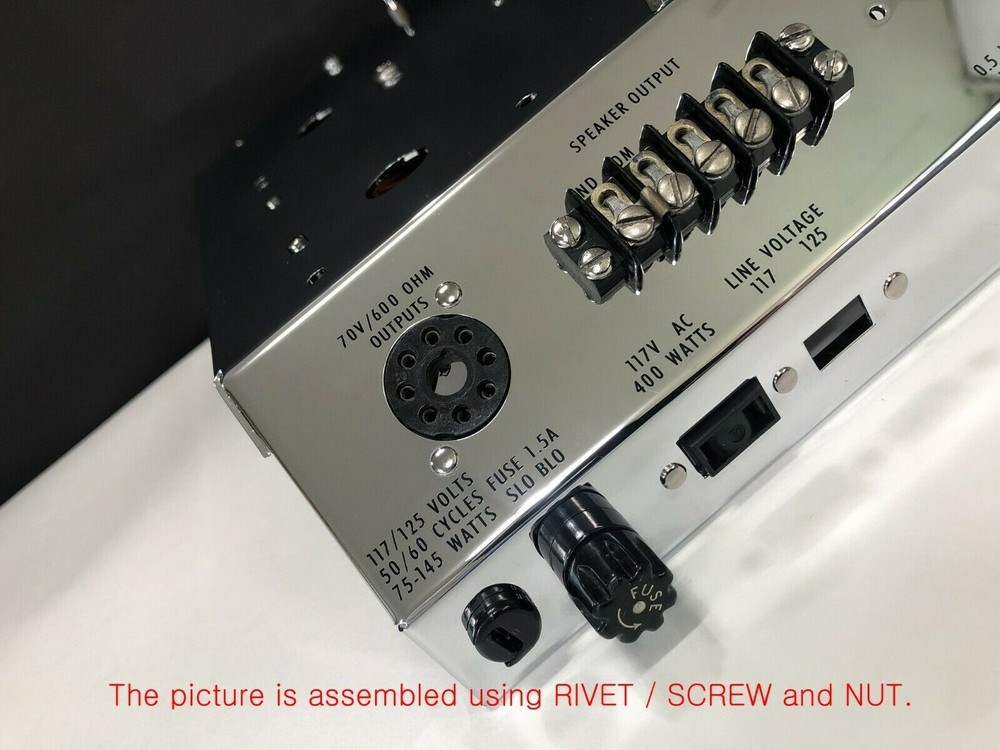 These products were made to restore damaged original products. Therefore, we inform you in advance that these products are not original but DIY products. These products were made as parts for restoring McINTOSH tube amplifiers. They can be used as a replacement for rivets when attaching tube sockets and parts to the chassis of all tube amplifiers such as MARANTZ, FISHER, and WESTERN ELECTRIC. This product has the same head width standard as the original (based on the rivets of McINTOSH amplifiers). This product (Rivet head shaped screw bolt) was specially developed as a replacement for the part that general users cannot easily do riveting work on the chassis for restoring tube amplifiers. The nut was also specially manufactured to minimize the size. In addition, these products (RivetHeadScrewBolt, K-LockWasher, FlatWasher, and Nut) are all silver chrome plated. The reason for the silver chrome plating is to minimize scratches, etc. Another effect is that the color is very clear and clean. The durability is also stronger than the general plating. Therefore, these products are a must for the chrome chassis or new chassis that we are selling now. The most important thing is that it can replace the riveting work and get the same effect as riveting. The packaging is dust-free and very safe, and the delivery is very safe and fast. Packing : - #6-32 Rivet Head Style Screw Bolts (Silver Chrome Plated) - 30 pcs - #6 Internal K-Lock Washers (Silver Chrome Plated) - 30 pcs - #6 Flat Washers (Silver Chrome Plated) - 30 pcs - #6 Hex Nuts (Silver Chrome Plated) - 30 pcs Payment : _ We must receive payment within 3 days after auction ended. _ We accept only PAYPAL. Shipping: _ Packaged and shipped very securely. This product is not sold in Korea and some countries. _ We usually ship within 2-3 business days after we received a clear payment. _ A rrival time is 14 to 21 business days (or 22 to 45 business days). There may be differences depending on the situation in your country. There is a tracking number for shipping this product. Safe delivery is guaranteed.