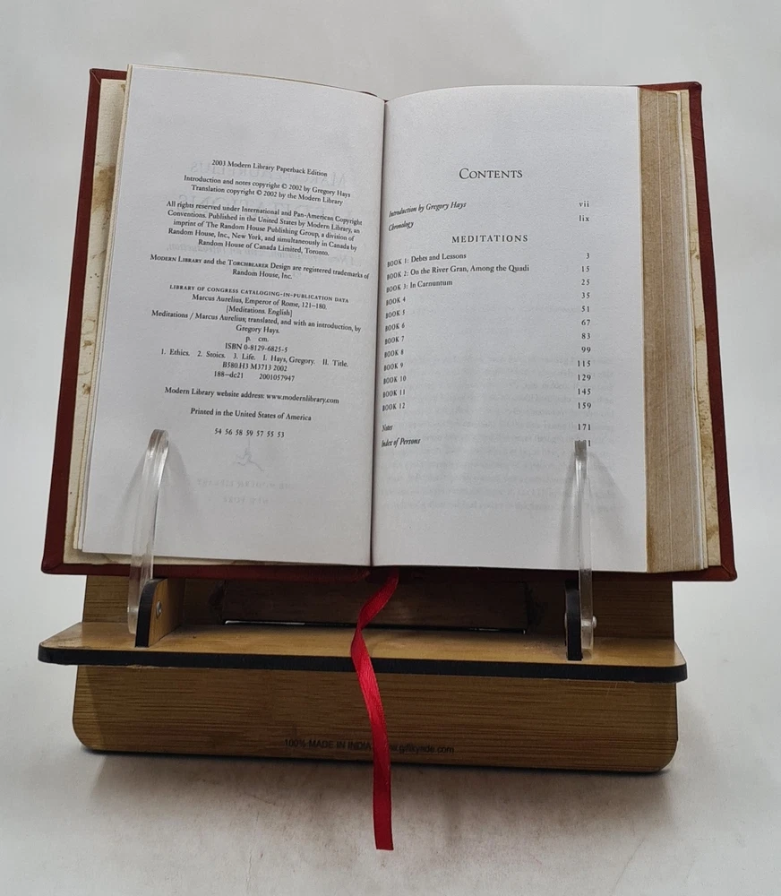GYAN BOOKS INTRODUCING A REMARKABLE LEATHER-BOUND EDITION, METICULOUSLY CRAFTED BY THE ESTEEMED INSTITUTION " RARE BIBLIO". This title holds the distinction of being a Bestseller, highly praised by readers across the GLOBE. We are thrilled to present this literary gem exclusively to our elite readers, meticulously encased in our one-of-a-kind Premium Leather Binding . Following your order, we purchase the book from the original publisher/distributor and embark on the process of rebinding to elevate this book to a Luxurious Reading Style. A UNIQUE LEATHER-BOUND BOOK FOR ELITE READERS/COLLECTORS OF OLD RARE AND BESTSELLING BOOKS. For the Binding, we use GENUINE LEATHER , graced with opulent GOLDEN LEAF DETAILING on the SPINE , FRONT COVER , AND BACK COVER , ADDED BY EDGE GILDING . ABOUT US ★ We deal into reprinting of the master pieces crafted by authors around the world. ★ We are proud to say that we have a collection of over 25 million books and our collection includes books that are as old as 200 years and hence are considered as RARE BOOKS. ★ We are pioneer in this field having experience of 40 years. ★ We also undertake printing and Leather Binding jobs of other books. ★ Thesis printing and Leather Binding is one of our important Service ★ Many publishers and author approach us for their books to bind in our Unique leather binding format for their special customers. ★ Our craftsmen are active in this job since generations. ★ Restoration of old books is our expertise ★ We are known by our Customization options. ★ We have many leather color options in our bucket. ★ The whole process is done manually so that it gives you the same feeling of old book. OFFERS & SPECIALIZATION: ★ SPECIAL DISCOUNT FOR BULK ORDERS, PLEASE CONTACT US. ★ CHOOSE ANY LEATHER COLOR OF YOUR CHOICE WITHOUT ANY EXTRA CHARGES, JUST CLICK ON IMAGES FOR OPTIONAL COLORS AND INFORM US YOUR CHOICE THROUGH MAIL WITH COLOR CODE. ★ WE OFFER A DIVERSE RANGE OF LEATHER COLORS, INCLUDING RED , GREEN , BLUE , BLACK, MAGENTA , YELLOW , TAN . WE ALSO OFFER MULTI-COLOR LABELS WITH THESE BEAUTIFUL BOOKS ON SPECIAL REQUEST. ★ AN ORIGINAL LEATHER IS BEING USED FOR BINDING THIS BOOK WITH GOLDEN LEAF PRINTING AND DESIGNING ON SPINE, FRONT AND BACK OF THE BOOK WITH EDGE GILDING . Points to note before booking order: ★ In case of multi volume sets, please note that the above listing is for a single volume only. (To order multiple volumes, please contact us separately). ★ We urge you to appreciate that our Leather-Bound Books are Genuine works of art and are Handcrafted by our Professional Craftsmen. Thus, requiring time and care to reach the pinnacle of excellence. ★ We Prepare the Book after receiving the Order. ★ We usually take 30 business days as handling time to dispatch shipment. ★ We request you to understand that these leather-bound books are work of art and hence require time to go through different process to be the master pieces that they are. ★ We usually take 30 business days as handling time to dispatch shipment. We consider special request for a special occasion. ★ Craftsman based in India, prepared this book and shipped from different stock locations around the Globe. Product Details: - ★ Complete Title: Meditations: A New Translation by Aurelius, Marcus & Hays, Gregory [PREMIUM LEATHER BOUND] ★ Author: Aurelius, Marcus & Hays, Gregory ★ Language: English ★ No. Of Pages: 256 ★ Year: 2003 ★ We provide ?Extra customization*? on request with additional charges. ★ We also undertake printing and Leather Binding of all the books. ★ Product Disclaimer: Please be aware that because leather is a natural material, slight discoloration or change in texture may be visible. About the Book: - "To me, this is the greatest book ever written. . . . It is the definitive text on self-discipline, personal ethics, humility, self-actualization, and strength. . . . If you're going to read it, you absolutely have to go with the Gregory Hays translation."--Ryan Holiday, #1 New York Times bestselling author of The Obstacle Is the Way "It is unbelievable to see how the emperor's words have stood the test of time. . . . Read a page or two anytime you feel like the world is too much."--Arnold Schwarzenegger, The Wall Street Journal Nearly two thousand years after it was written, Meditations remains profoundly relevant for anyone seeking to lead a meaningful life. Your ability to control your thoughts--treat it with respect. It's all that protects your mind from false perceptions--false to your nature, and that of all rational beings. A series of spiritual exercises filled with wisdom, practical guidance, and profound understanding of human behavior, Marcus Aurelius' Meditations remains one of the greatest works of spiritual and ethical reflection ever written. With bite-size insights and advice on everything from living in the world to coping with adversity and interacting with others, Meditations has become required reading not only for statesmen and philosophers alike, but also for generations of readers who responded to the straightforward intimacy of his style. In Gregory Hays's translation--the first in nearly four decades--Marcus's thoughts speak with a new immediacy. In fresh and unencumbered English, Hays vividly conveys the spareness and compression of the original Greek text. Never before have Marcus's insights been so directly and powerfully presented. With an Introduction that outlines Marcus's life and career, the essentials of Stoic doctrine, the style and construction of the Meditations, and the work's ongoing influence, this edition makes it possible to fully rediscover the thoughts of one of the most enlightened and intelligent leaders of any era.