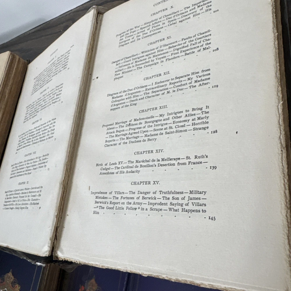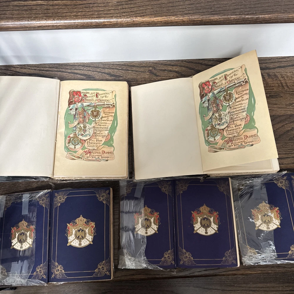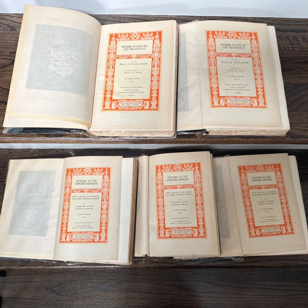 Please see all photos for condition . Please be aware of these books are very old and the condition shows the bindings are worn and pulling , the owner has tried to care for them and covered in a book wrap but please take note that these books are very very worn and will be sold as is condition . Please let me know if you have any questions or would like any further photos Delve into the rich tapestry of European history with this captivating lot of 5 books, entitiled "Memoirs And Secret Chronicles", which offer an insightful glimpse into the lives of French Royals. The set includes narratives on Napoleon, Louis XI, and Junot, providing a comprehensive view of their reigns and the events that shaped their times. Each book is a vintage original printed in 1901 by the St Dunstan Society, Akron Ohio. They are bound in elegant leather and published in English, making them a prized addition to any history buff's collection. With no inscriptions or signatures, these books are a pure celebration of the subject matter, ready to find their place in your personal library.