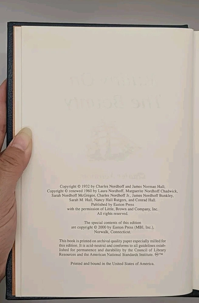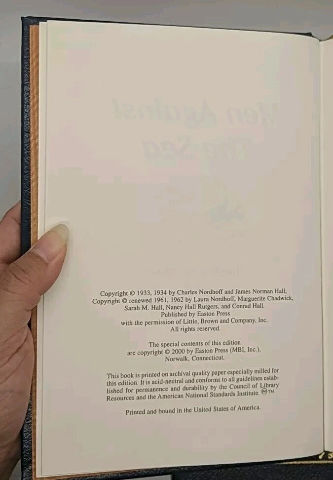 Men Against The Sea / Pitcairn's Island / Mutiny On The Bounty Set by Charles Nordhoff and James Norman Hall (2000, Easton Press) Leather Bound; Very Good, 3 volume set, gilt on the edges of Pitcairn's Island & Mutiny On The Bounty is scratched, no other notable flaws Thanks for visiting Famine Books! We're starving to be the best and most cost effective choice for all kinds of book collecting. If you have any further questions about this book, or any in our inventory, please don't hesitate to ask! Are you a book collector? Let Famine Books help you find what you're looking for! Whether you're looking for a reading copy of your favorite obscure sci-fi paperback, a specific number of a limited edition, or a perfect copy of one of the classics, we can help you find it. Message us for more details!