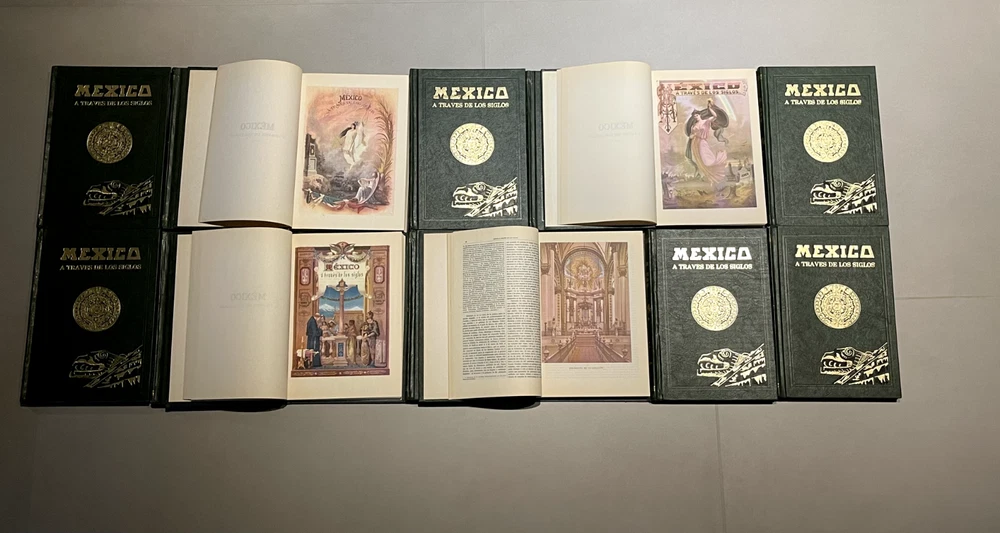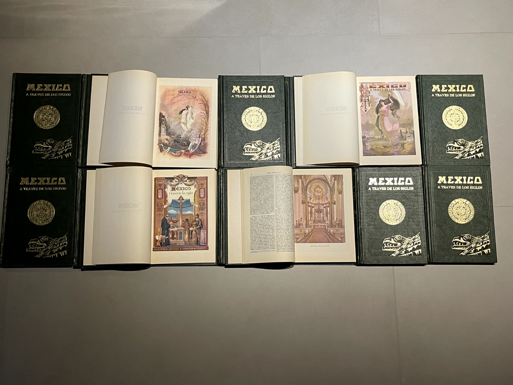 Mexico A Traves de Los Siglos by D. Vicente Riva Palacio – 14 Volumes Set ( Missing Volumes 15 & 16 ) This is a 14-volume set of Mexico A Traves de Los Siglos , published by Editorial Cumbre in 1984. Volumes 15 and 16 are missing. The books are written in Spanish and cover a detailed history of Mexico, featuring illustrations and color plates throughout. Each hardcover volume is in good condition (see pictures) and was made in Mexico. Great for collectors, students, or anyone interested in Mexican history. This set is both informative and a nice addition to a Latin American history collection. Please feel free to reach out if you have any questions.