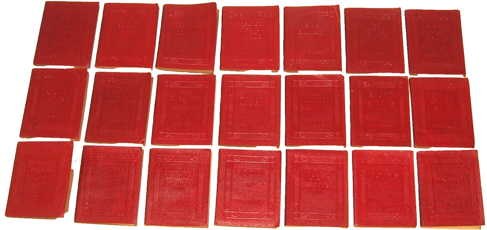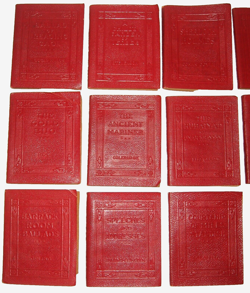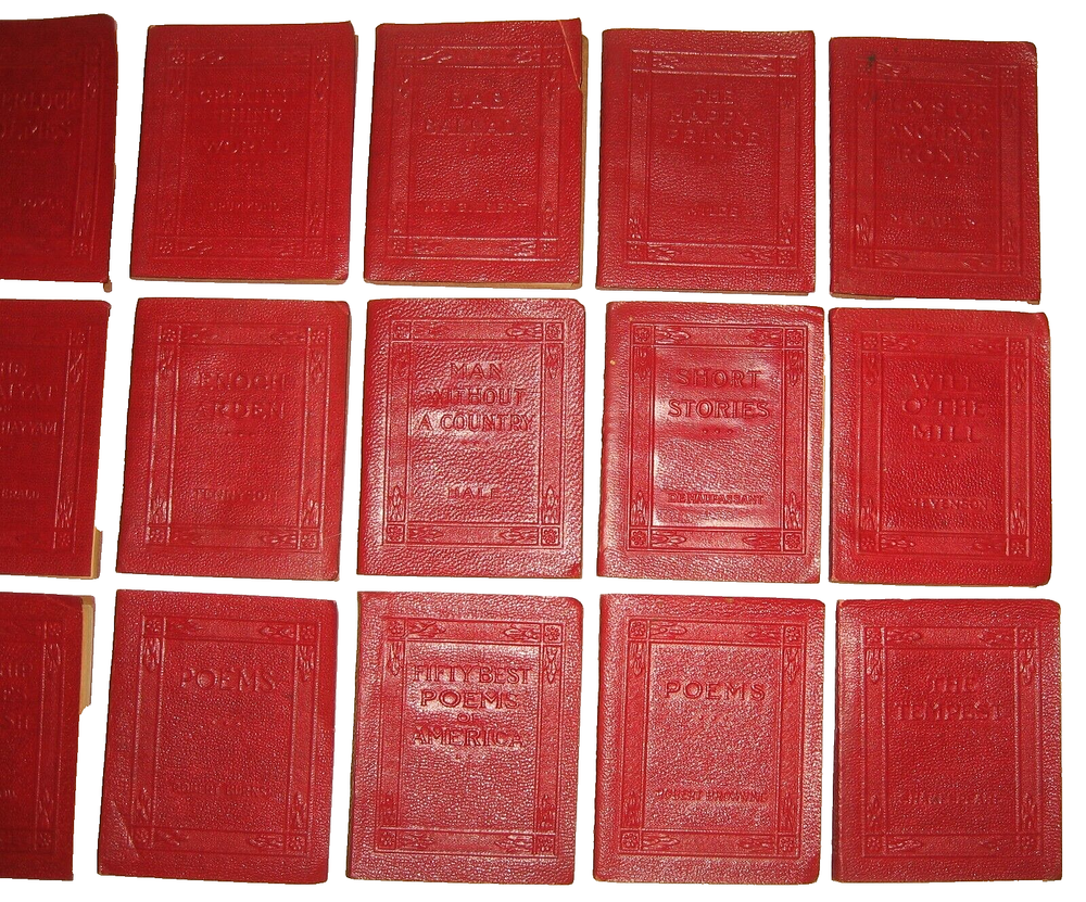 We do have a little French bulldog-so while all attempts are taken to ensure no errant hairs have made their way onto this item-it is a possibility-so if you or someone in your home are highly allergic this may not be a good source for you. He also attends doggie daycare on a pretty regular basis-so while we do not own a cat-there is a very remote possibility that another dog may transfer their hair or fur or a cat's hair to our dog. WE DO NOT OWN A CAT! Please take a quick moment to read through the entire item description section below before placing your bid. I post measurements as a "courtesy" only-measurements are taken flat and un-stretched-but please do know your general size as I do not accept returns. If you are new to Ebay or have a feedback score of less than 10 please contact me before placing a bid.... Estate sale find....I would consider these excellent for the age...as there are no missing pages/rips/major damage to corners and edges/etc.-The Gold Bug book has a 1/2" bend to the upper front right outer corner...the remainder may have minor bends at edges and wear at outer sides of books but all very-very minor for the age ~ the first photo is how they were found on the shelf in a hallway in the home....Full listing of each book below with author The Gold Bug-Poe, Ballad of Reading Goal-Oscar Wilde, Enoch Arden-Tennyson, The Tempest-Shakespeare, Courtship of Miles Standish-Longfellow, Speeches and Addresses-Abraham Lincoln, Barrack Room Ballads-Kipling, Will of The Mill-Stevenson, The Happy Prince-Wilde, Bab Ballads-WS Gilbert (bend in upper front corner), Greatest Thing in the World-Drummond, Lays of Ancient Rome-Magaulay (small dark marks at outer right edge), The Ancient Mariner-Coleridge, Man Without a Country-Hale, Sherlock Holmes-Conan Doyle, Short Stories-Demaupassant, The Rubaiyat of Omar Kyayyam-Fitz Gerald, Poems-Robert Burns, A Child's Garden of Verses-Stevenson, Fifty Best Poems of America, Poems-Robert Browning Each Book Measures Approximately: 4' x 3"