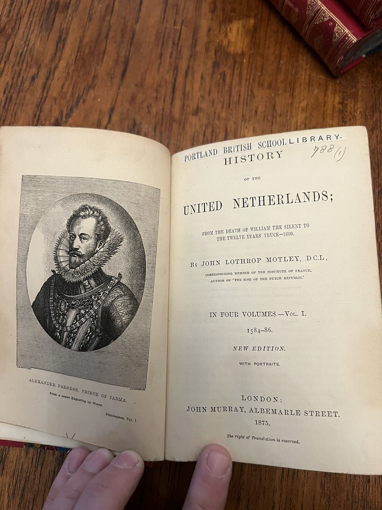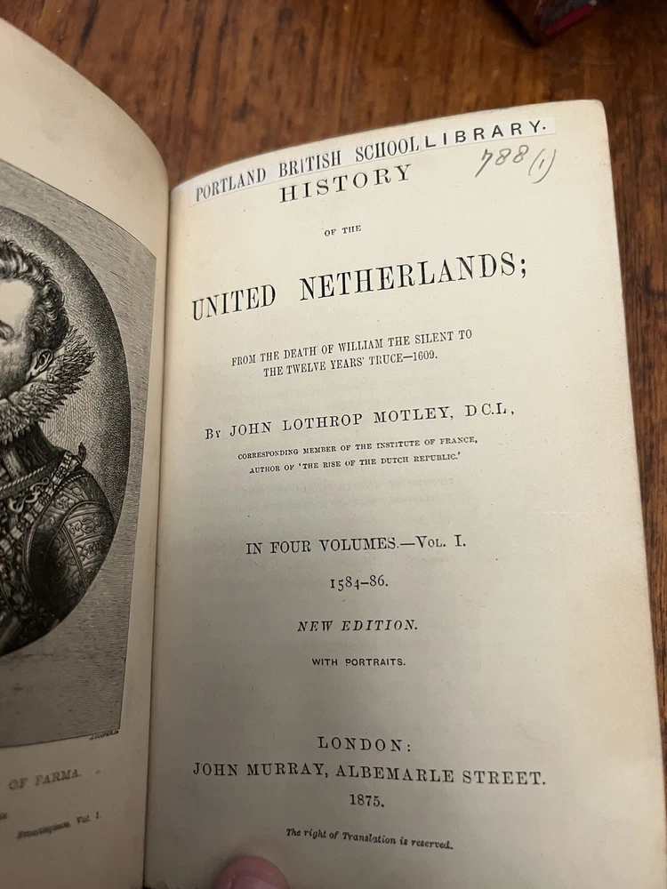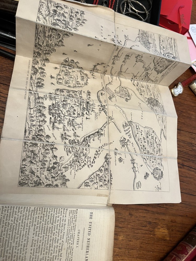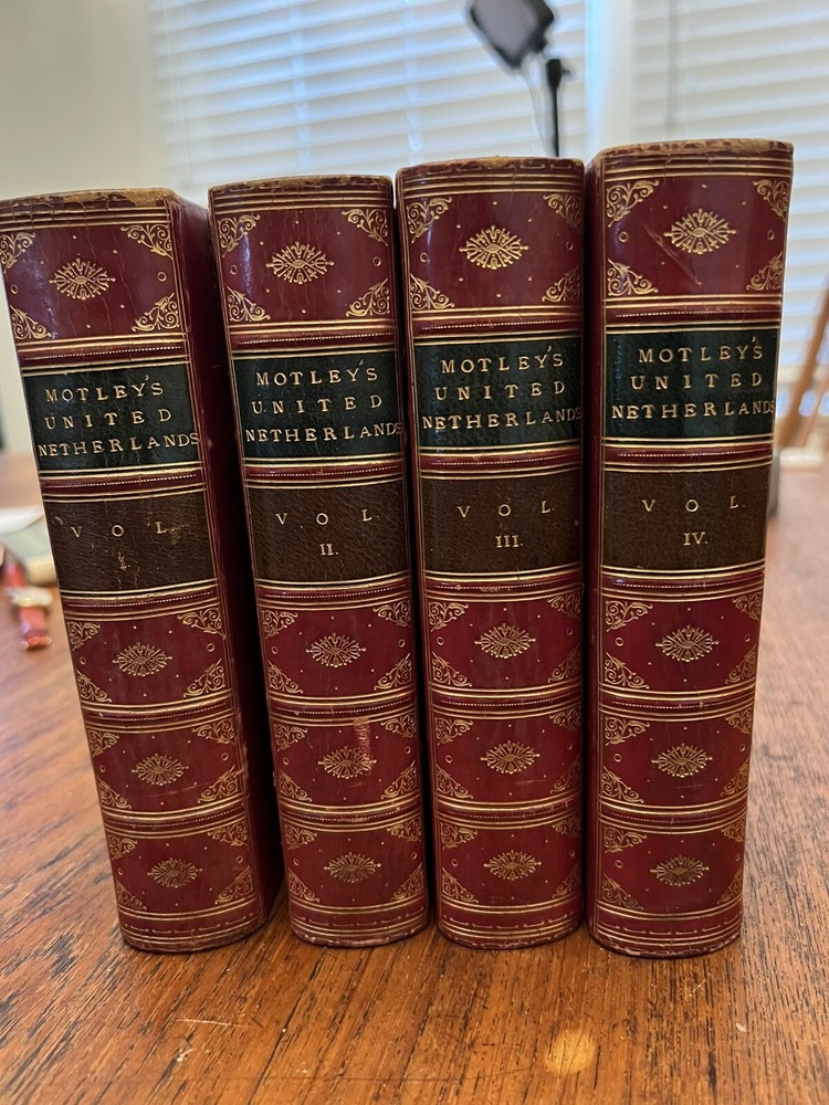 Motley's History of the United Netherlands 1885 Leatherbound with marbled boards fd out map beautiful set. Excellent condition Portland British school Library history...