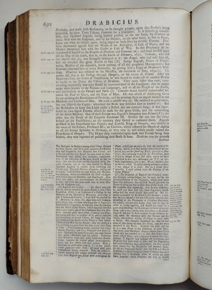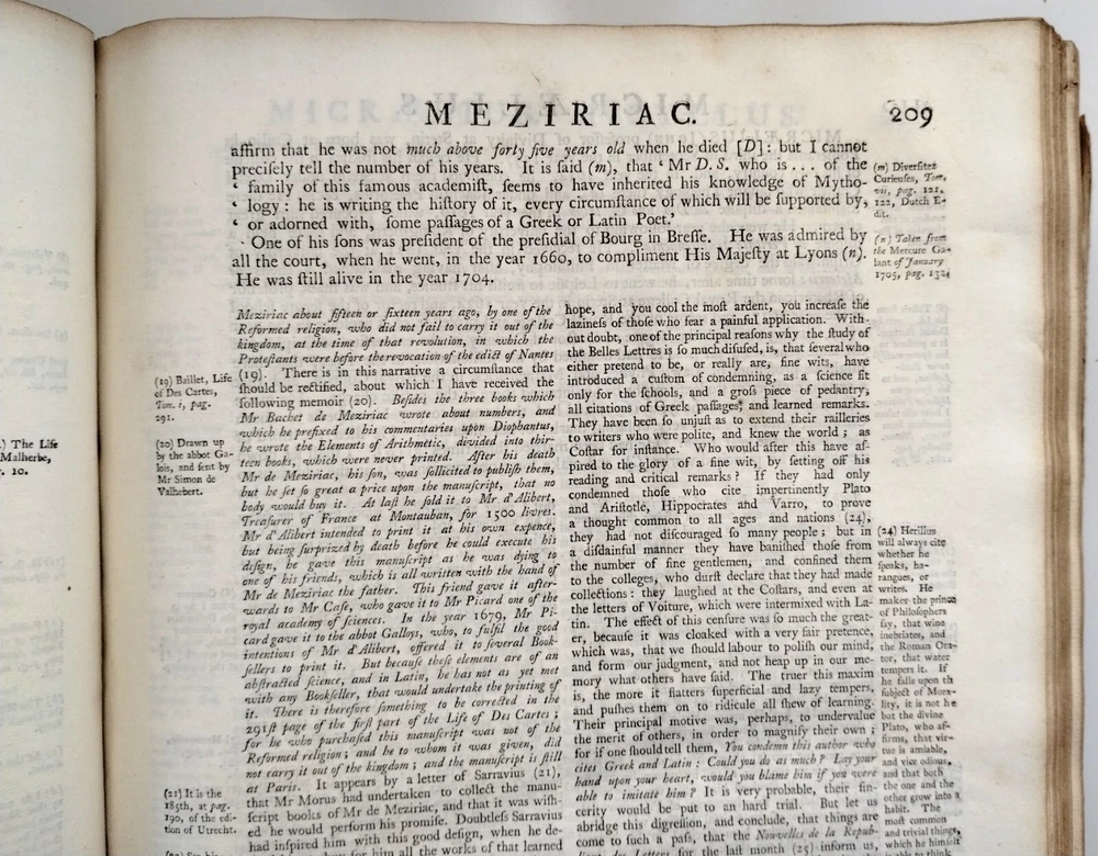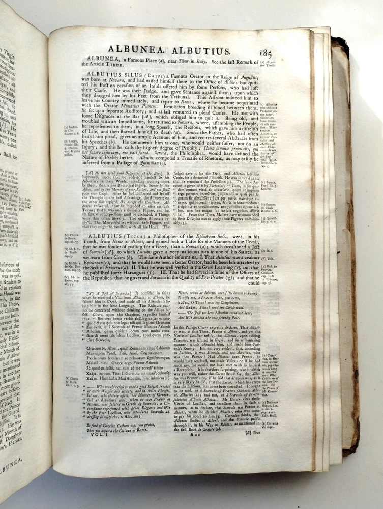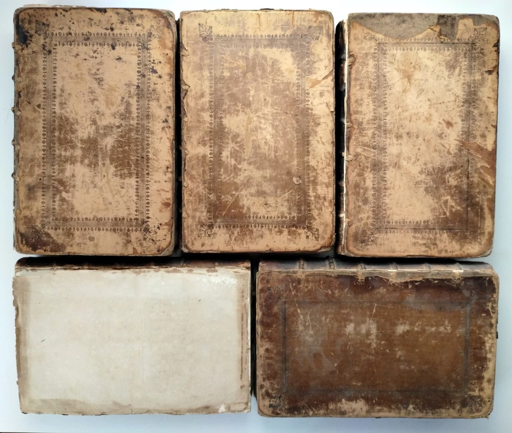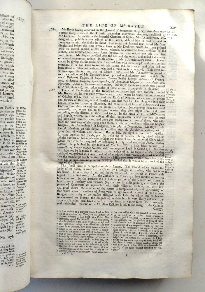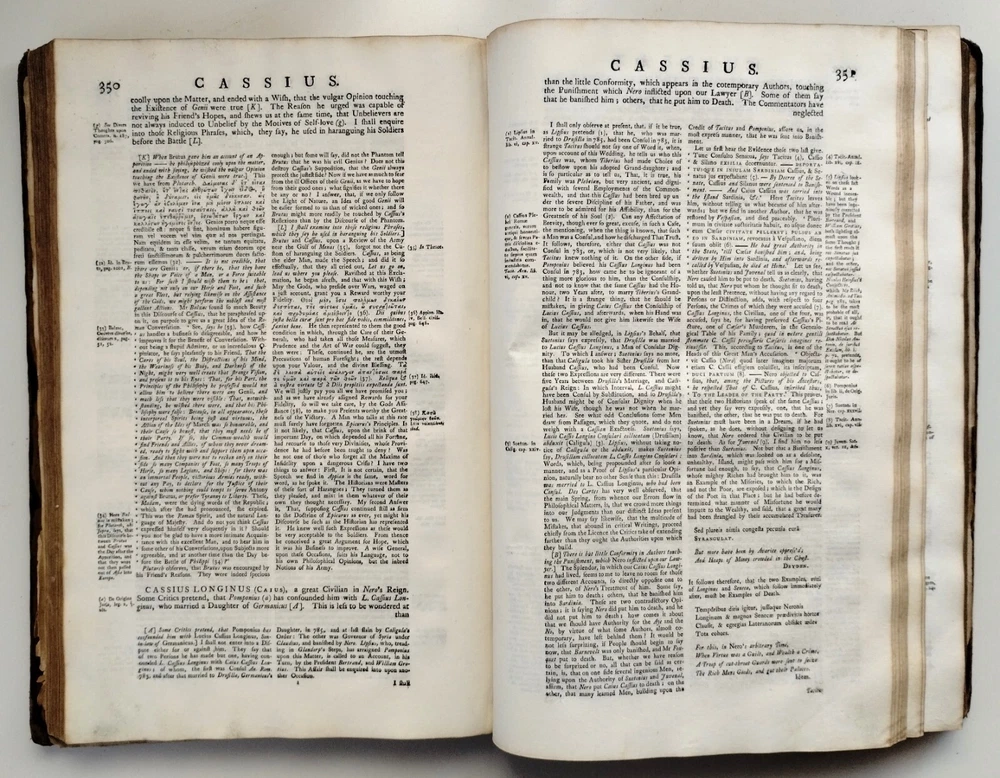 Mr. Bayle’s Historical & Critical Dictionary (2 nd English Edition) in 5 volumes in Fair condition with no dust jacket, bound in a hardcover with a size of 3 x 10 x 15 inches. Published during the years of 1734-1738 in London. Full title: “Mr. Bayle’s Historical and Critical Dictionary. The Second Edition, C arefully Collated with the Several Editions of the Original, in which Many Passages are Restored, and the Whole Greatly Augmented, Particularly with a Translation of the Quotations from Eminent Writers in Various Languages, to which is prefixed The Life of the Author, revised, corrected and enlarged, by Mr. Des Maizeaux, Fellow of the Royal Society”. Embossed leather covers with raised bands on spines; leather is worn and torn, revealing boards underneath. Covers and first and last few pages detached, one of the pages has a piece torn away; these first and last pages have chipped edges. Volume 4 is missing the cover; green paint visible on some pages and covers; (see pics). The interior pages are in good condition though the bindings are loose in some places. Volume One Published in 1734; V2 in 1735; V3 in 1736; V4 in 1737; V5 in 1738. Each volume states: "Printed for J.J. and P. Knapton; D. Midwinter; J. Brotherton; A. Bettesworth; C. Hitch; J. Hazard; J. Tonson; W. Innys; R. Manby; J. Osborne; T. Longman; T. Ward; E. Wicksteed; W. Meadows; T. Woodward; B. Motte; W. Hinchliffe; J. Wathoe, Jr.; E. Symon; T. Cox; A. Ward; D. Browne; S. Birt; W. Bickerton; T. Astley; S. Austen; L. Gilliver; H. Lintot; H. Whitridge; R. Willock." Seller will include insurance with the shipping service and a Signature will be required at delivery. Seller will have additional security features to enhance the peace of mind of both seller and buyer. We package with great care and ship quickly in cardboard. Discount when you buy multiple items in one order. Chris' Li'l Bookstore: serving satisfied customers since 2006. We sell books, music, records, CDs, DVDs and Audiobooks. (T3-291/95)