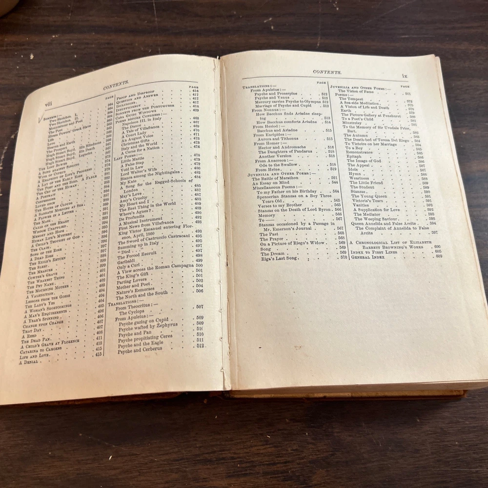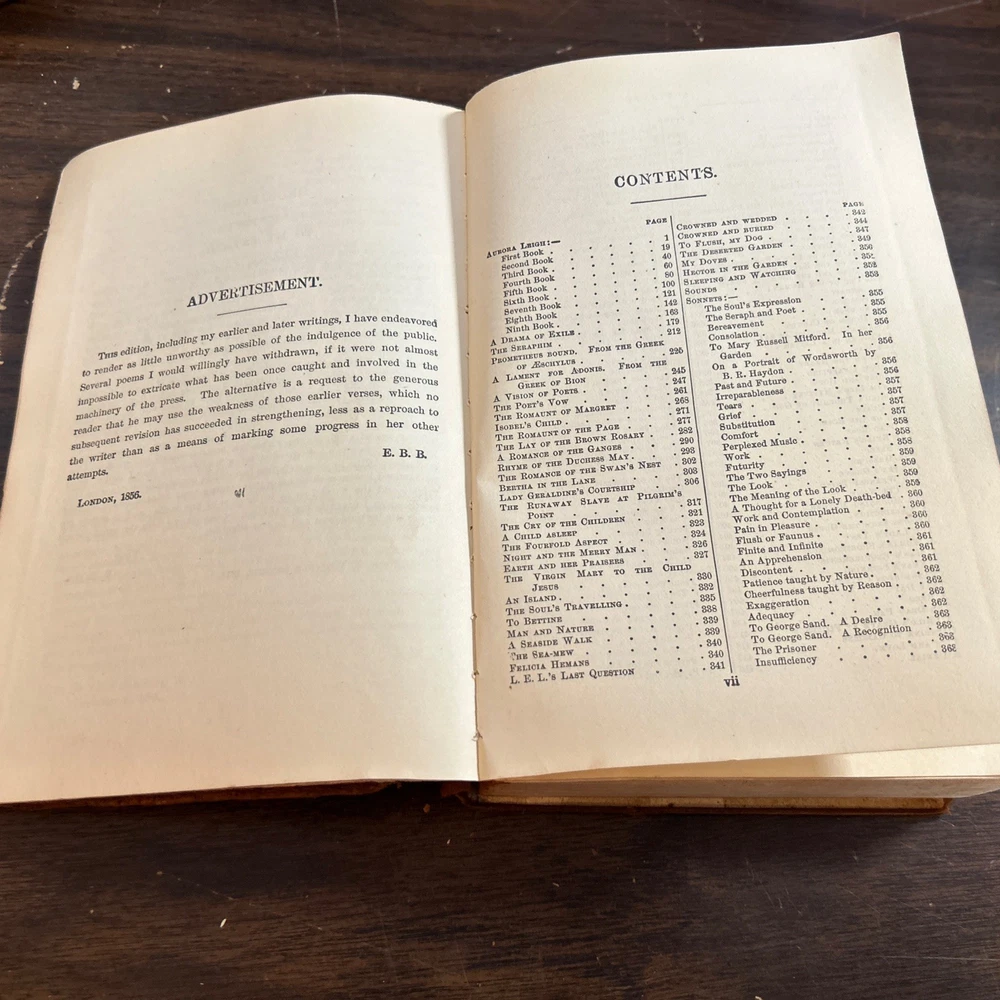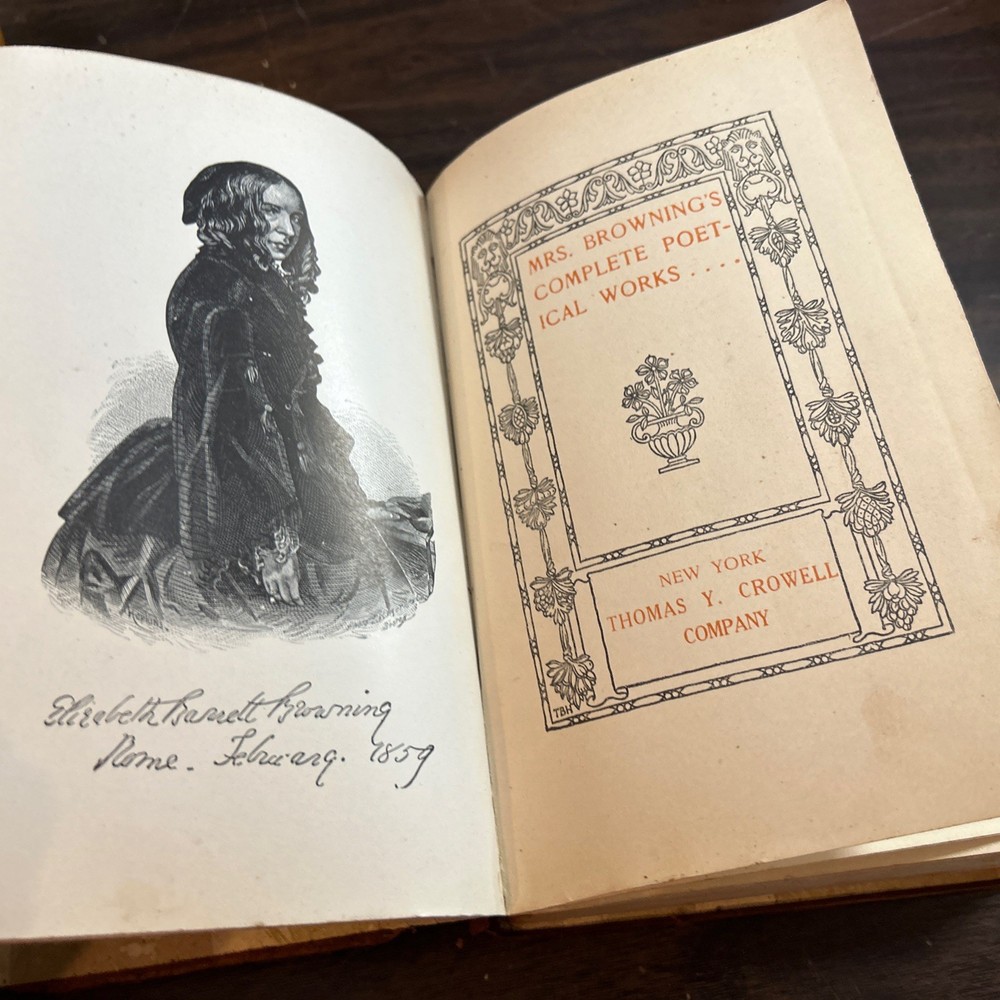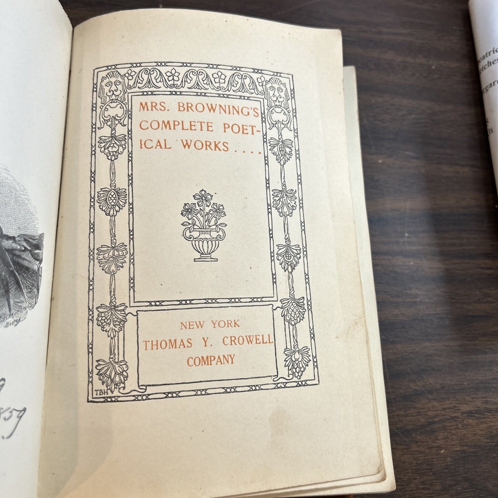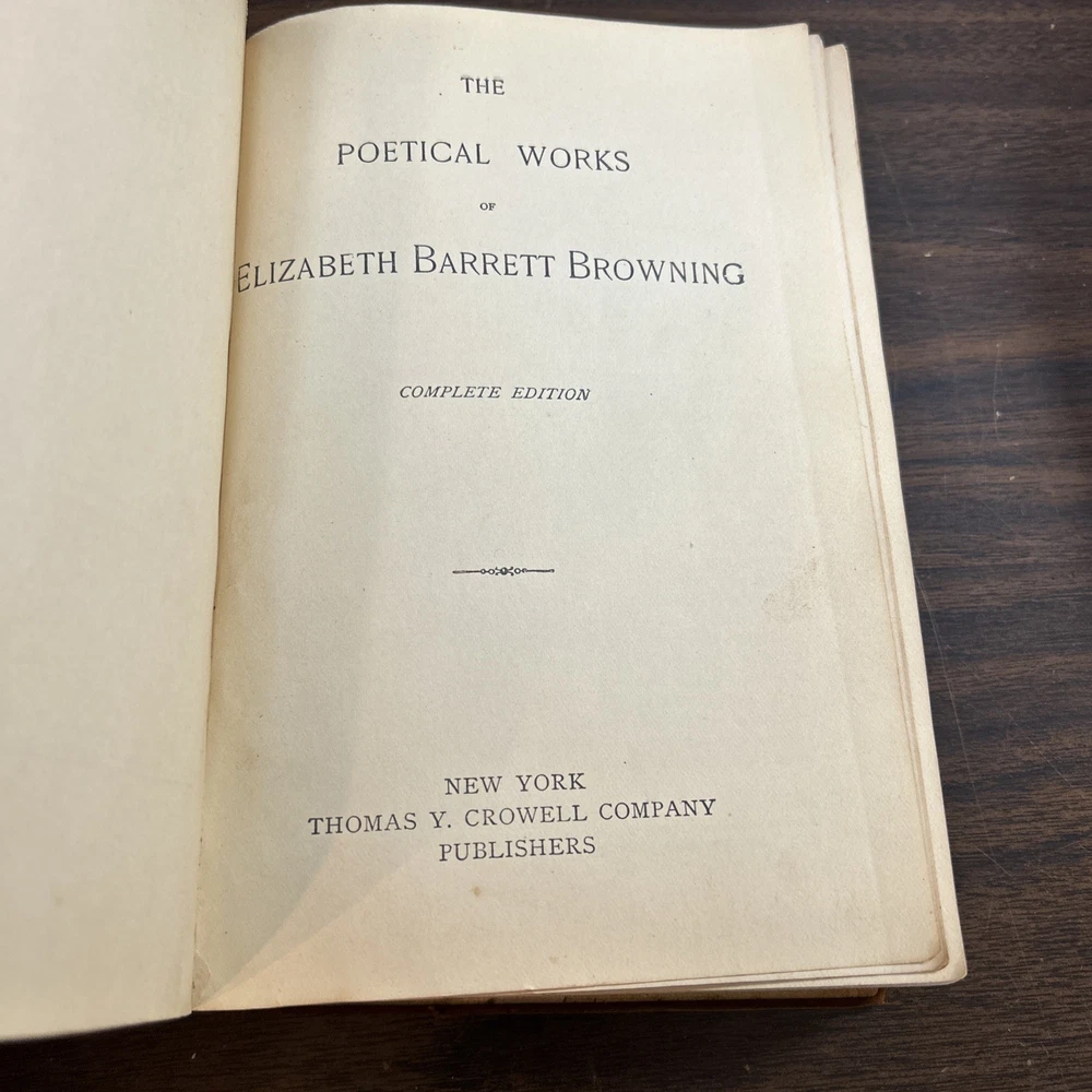 The "Mrs. Browning's Poetical Works Complete Edition (1887)" is a collectible book featuring the poems of Elizabeth Barrett Browning. This leather-bound edition was published in New York by Thomas Y. Crowell Co. in 1887, making it a valuable piece for any poetry enthusiast. With special attributes like being ex-library and a complete edition, this original work from North America is a treasure for those interested in the poetic works of Elizabeth Barrett Browning. The leather bound has a lot of diterearation.