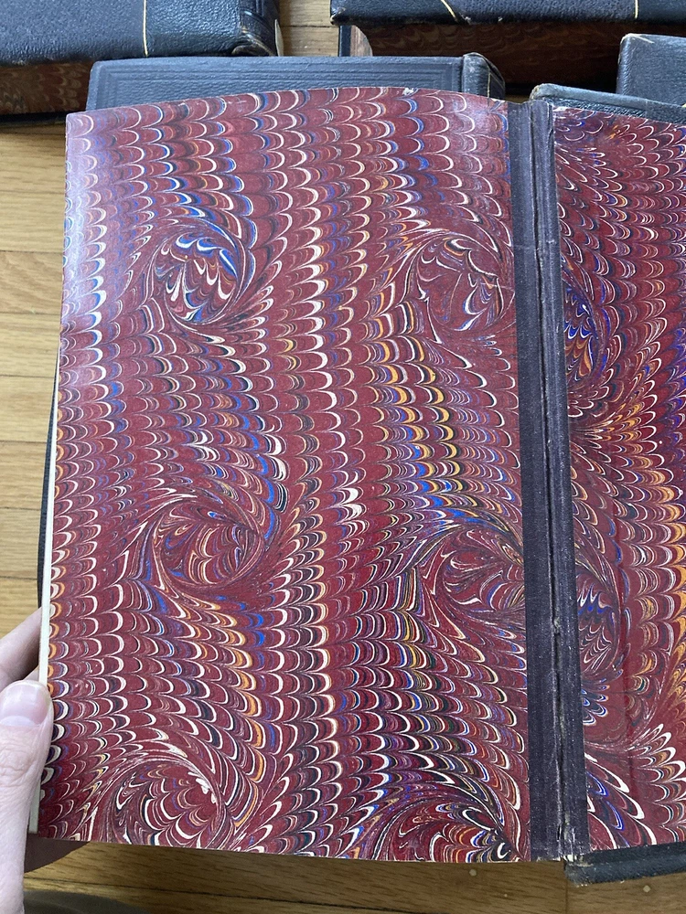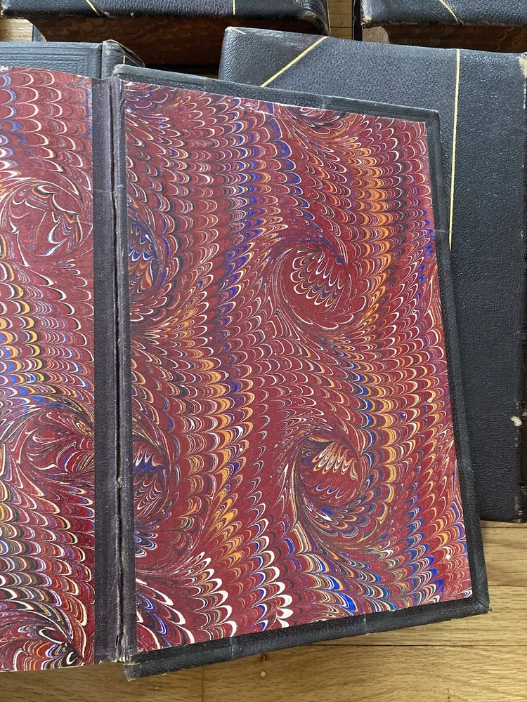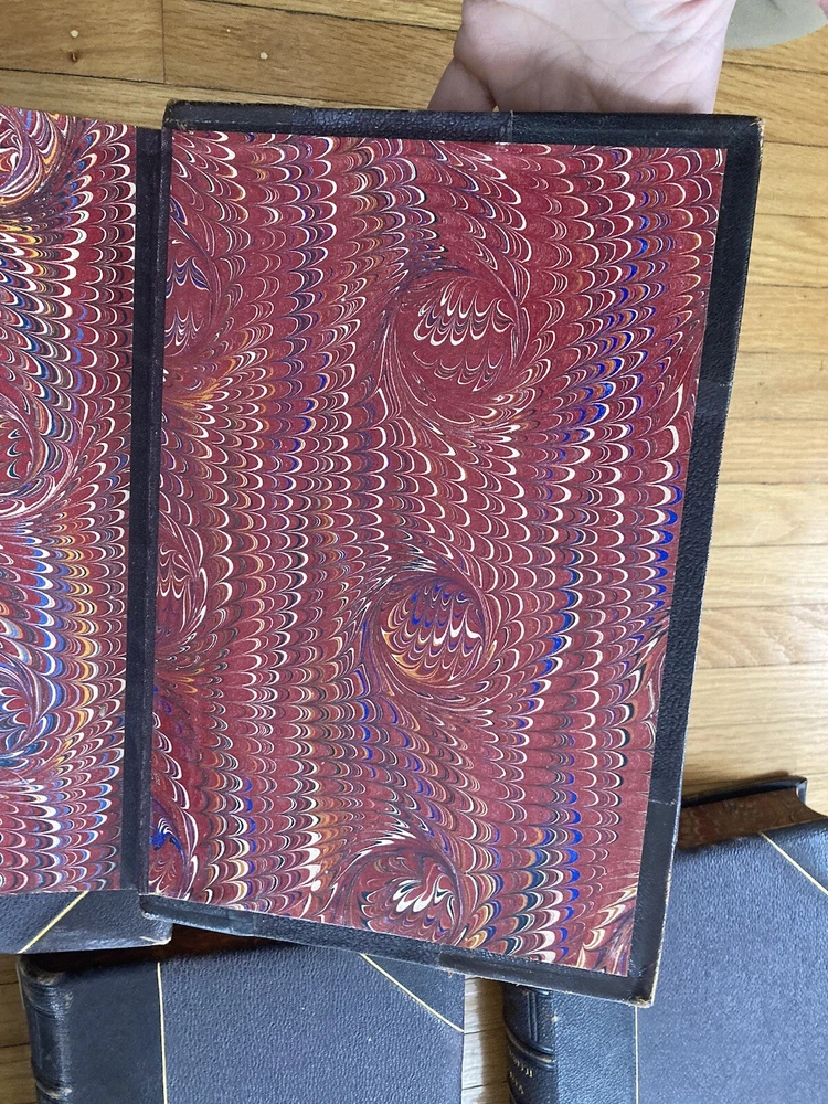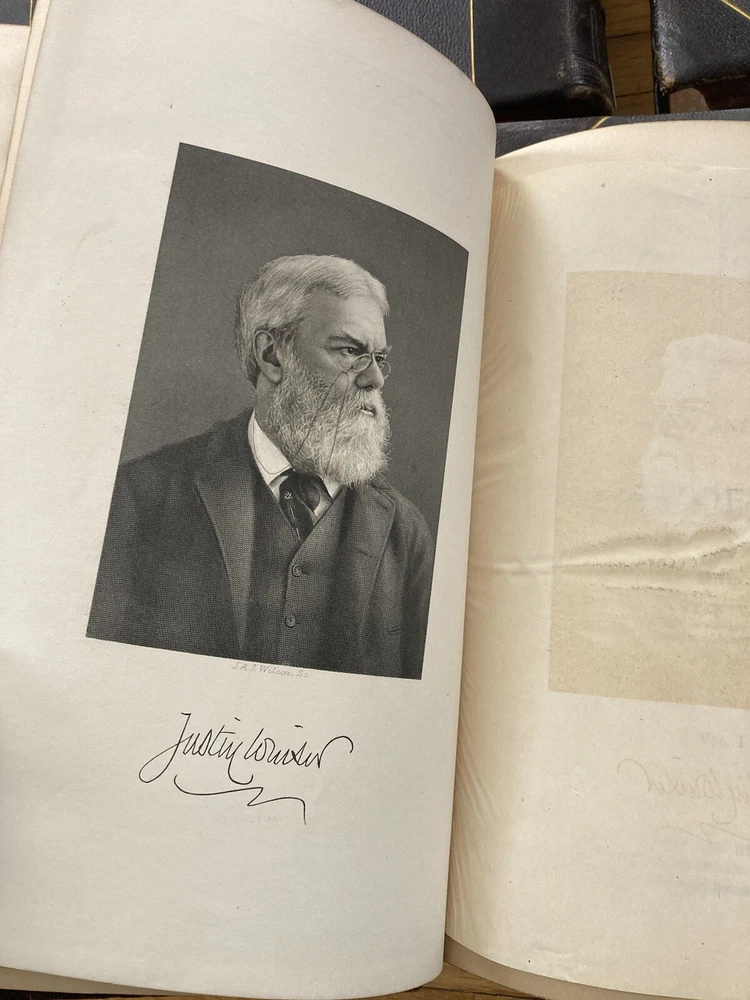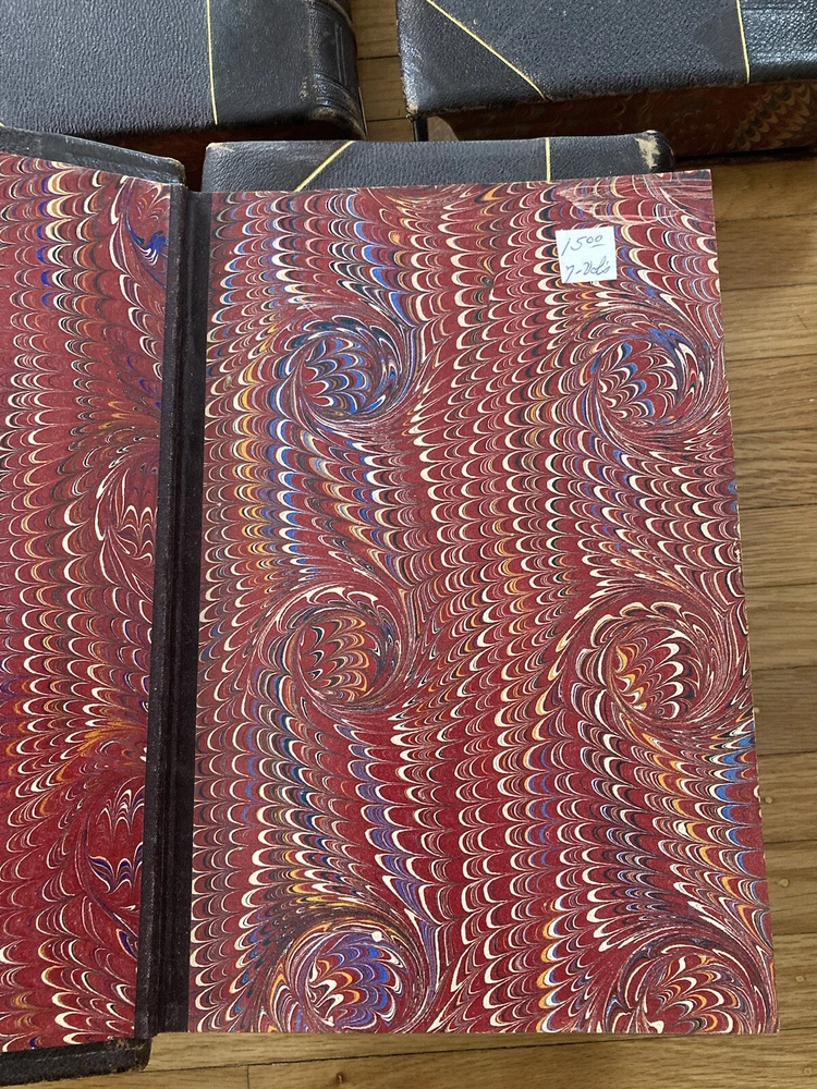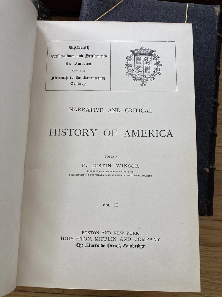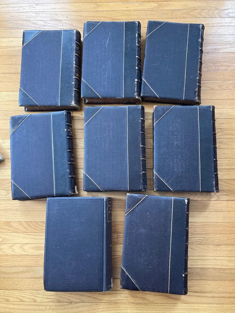 volume 1 is signed by winsor. The books are former library. There are stickers and stamping. Please see pictures. clean throughout. complete set of eight hardcover books bound in 3/4 brown leather with marbled boards and endpapers. The top edges are gilt and there are five raised bands on each spine Front cover on one volume has a slight flaw.