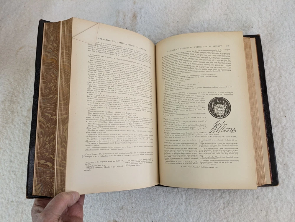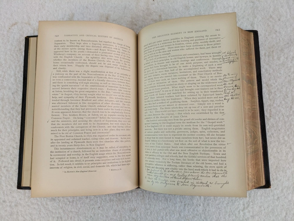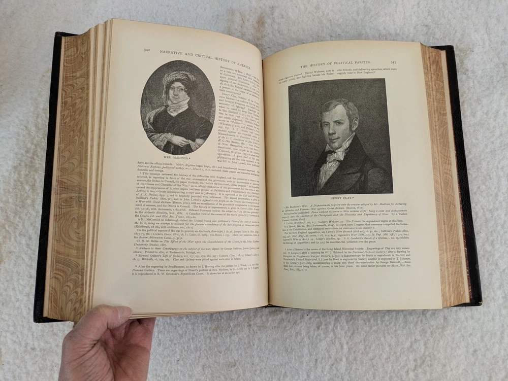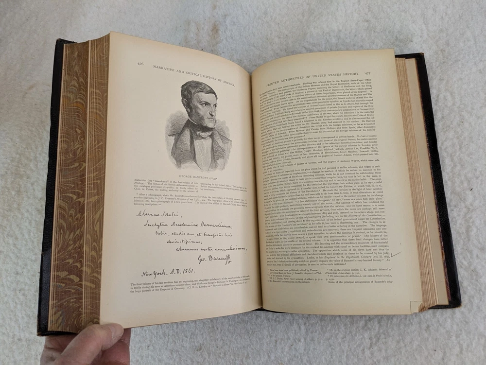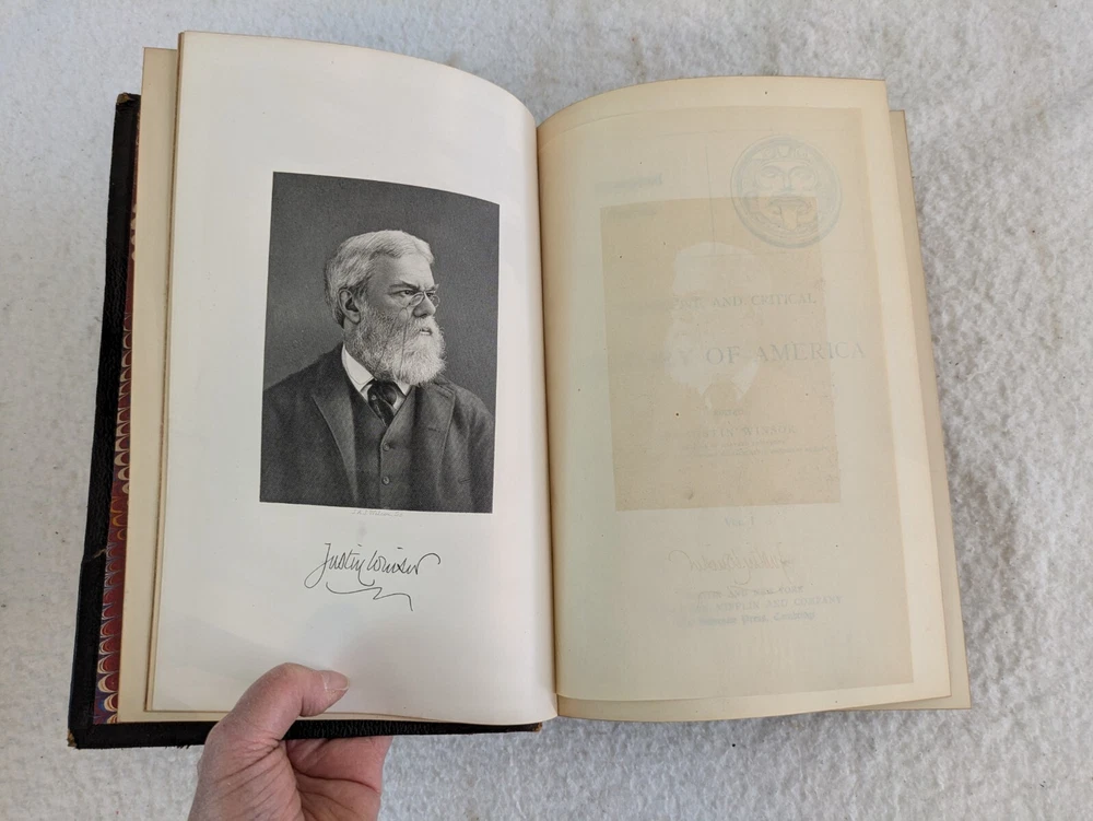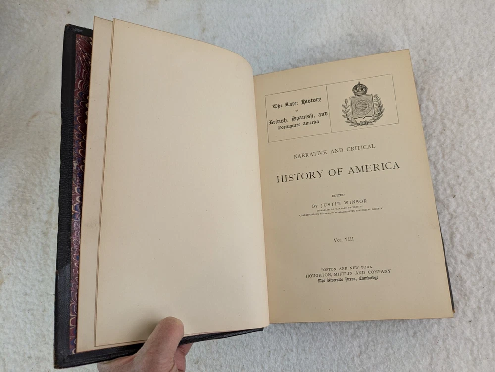 NARRATIVE AND CRITICAL HISTORY OF AMERICA Edited by Justin Winsor Houghton Mifflin and Company, 1889 8 Volumes, Complete Set Eight Full Leather Hardcovers in Very Good Condition. Leather has wear at spines and edges. Bindings are all sound. Occasional page corners are turned. There are occasional markings in the text but mostly in Volumes III and IV. Please examine photos for details. Condition: We strive to describe and photograph the condition of every item as accurately as possible. Photos are of the actual item that is being sold. Please examine the photos carefully for any condition details and possible flaws. Best Offers: We consider all offers in relation to current market values. We try to respond almost immediately to most offers. Most of our counteroffers are firm but we are open to bargaining. Shipping: We combine shipping. All of our orders are packed carefully to prevent damage during shipment. We ship most of our items within 24 hours. International Shipping: All international orders are shipped via Ebay's International Shipping Program. Contact Us: We are available 7 days a week and are happy to answer any questions you may have.