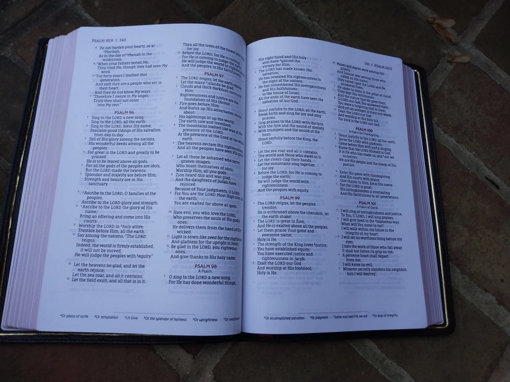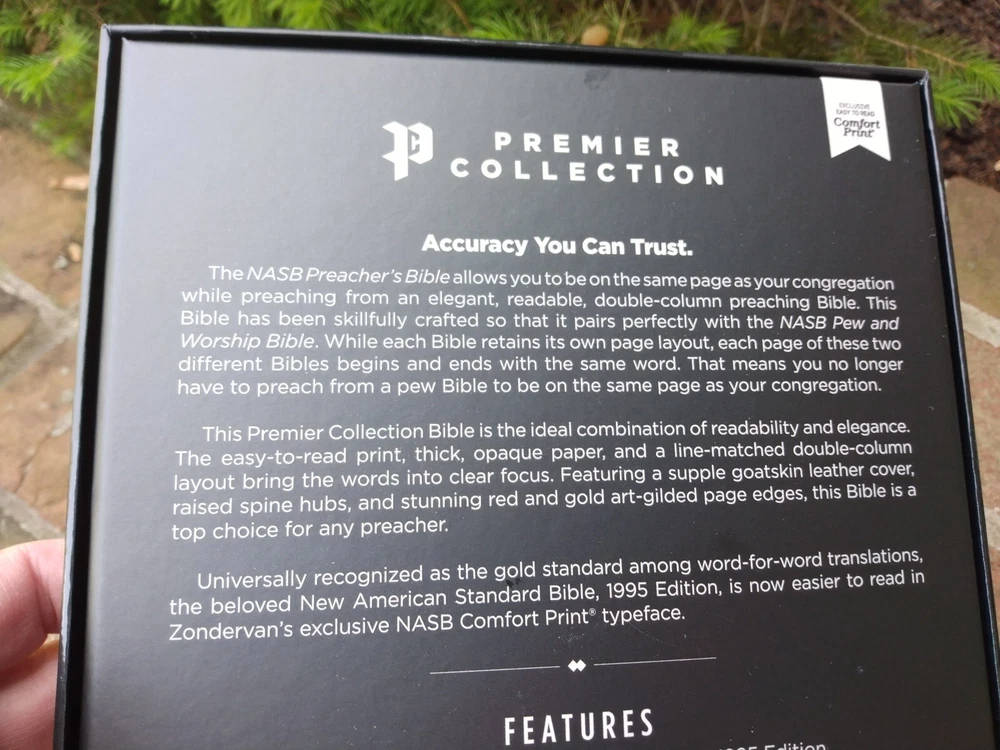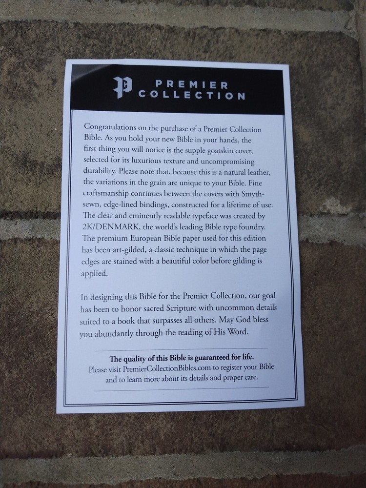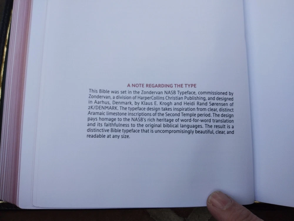The Bible was a perfect gift to my husband !! Very soft leather and font easy to read!!!