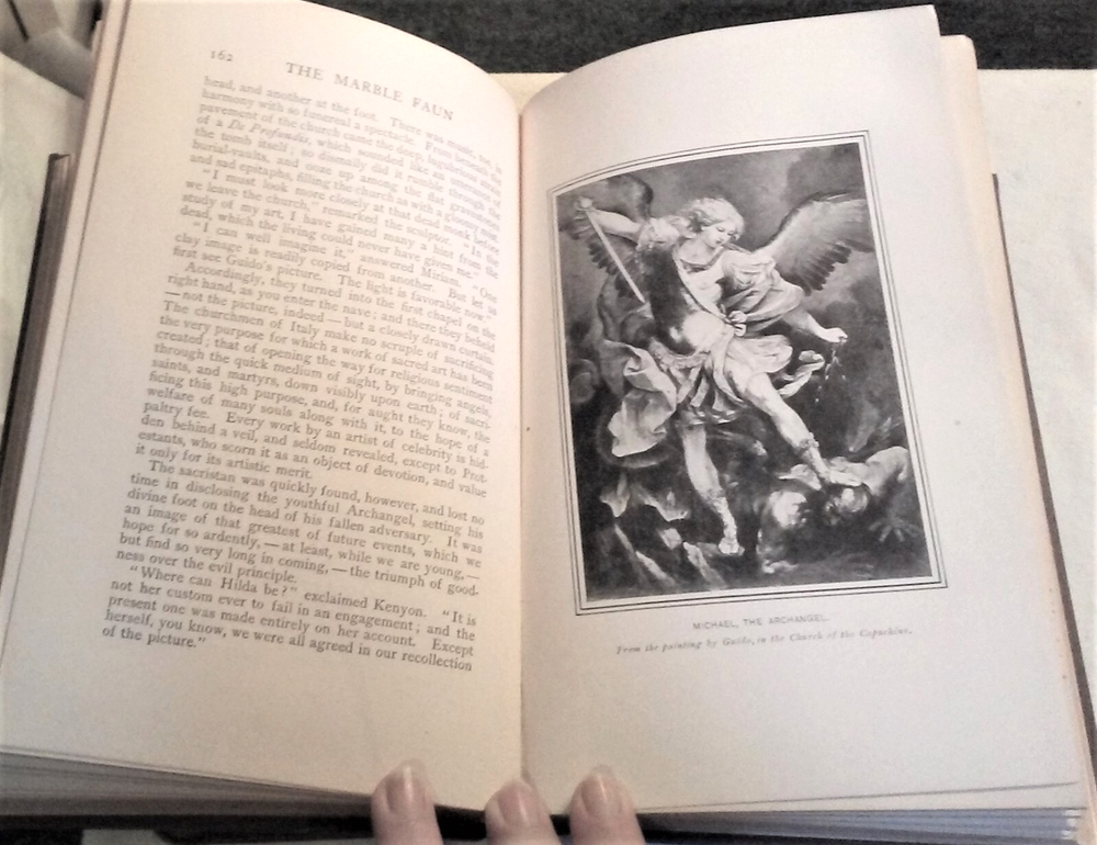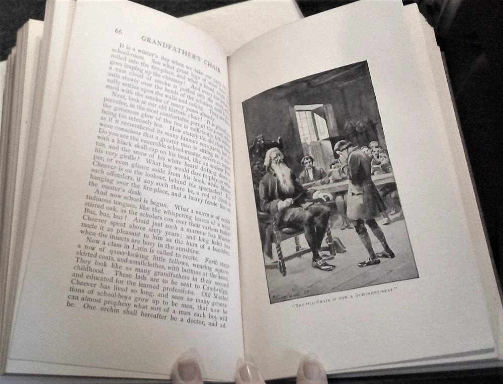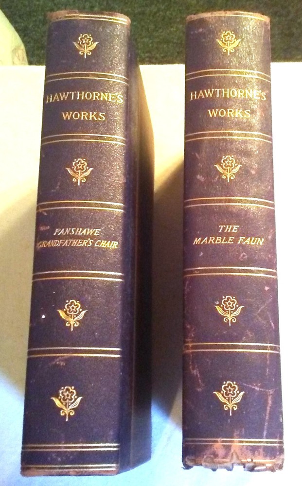 This is a set of two antique books containing 4 books written by the American author Nathaniel Hawthorne (1804-1864). They were published in 1902, and are brown boards with leather spines. Both are illustrated and both are in excellent condition. Condition of the covers are shown. The first book contains The Marble Faun: Or The Romance of Monte Beni , Hawthorne's last romance (set in Italy), which was published in 1860. 216 pages. There is a mark, either from water or glue, on the front endpaper. Otherwise perfect. The second book contains Fanshawe, Grandfather's Chair and Biographical Stories , as well as a short biography of Hawthorne written by Katharine Lee Bates (known for writing America the Beautiful ), who also wrote the introduction in both books. Fanshawe was Hawthorne's first novel. He published it anonymously in 1828 and paid for the printing. It is about his experiences at university. The Whole History of Grandfather's Chair Or, True Stories from New England History, 1620-1808, aka Grandfather's Chair, A History for Youth. This is a book published in 1840. It is a history of Colonial and post- Revolutionary War America written especially for young people. Hawthorne uses a sturdy oak chair, which appears in each of the stories, as a way to make more entertaining the early history of America. He includes Plymouth and the Pilgrims, the founding of Rhode Island, the Salem witch hysteria, Cotton Mather, the Liberty Tree, the Boston Massacre, the Boston Tea Party, the Continental Congress, and the Declaration of Independence. That is followed by Biographical Stories, in which Hawthorne writes about Benjamin West, Sir Isaac Newton, Samuel Johnson, Oliver Cromwell, Benjamin Franklin and Queen Christina. This second volume is 244 pages. Aside from a minor abrasion to the inside back cover, it is in perfect condition. For more, go to my Ebay Store at https://www.ebay.ca/str/starcanadianseller Please note: I do not accept returns. All sales are final. Also please note that, for the stated delivery price, I only ship to Canada and the continental USA. If you are outside of these areas, please request a shipping quote BEFORE purchasing. If you buy more than one item, I am happy to combine shipping.