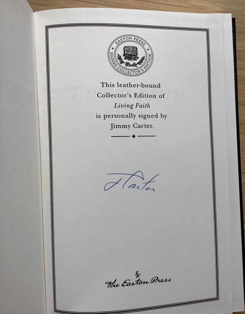 NEW Jimmy Carter 2 book Set: Living Faith & Sources Of Strength, SIGNED by our former President. Beautiful leather bound limited edition. Published by the Easton Press. Shipped with USPS Media Mail....