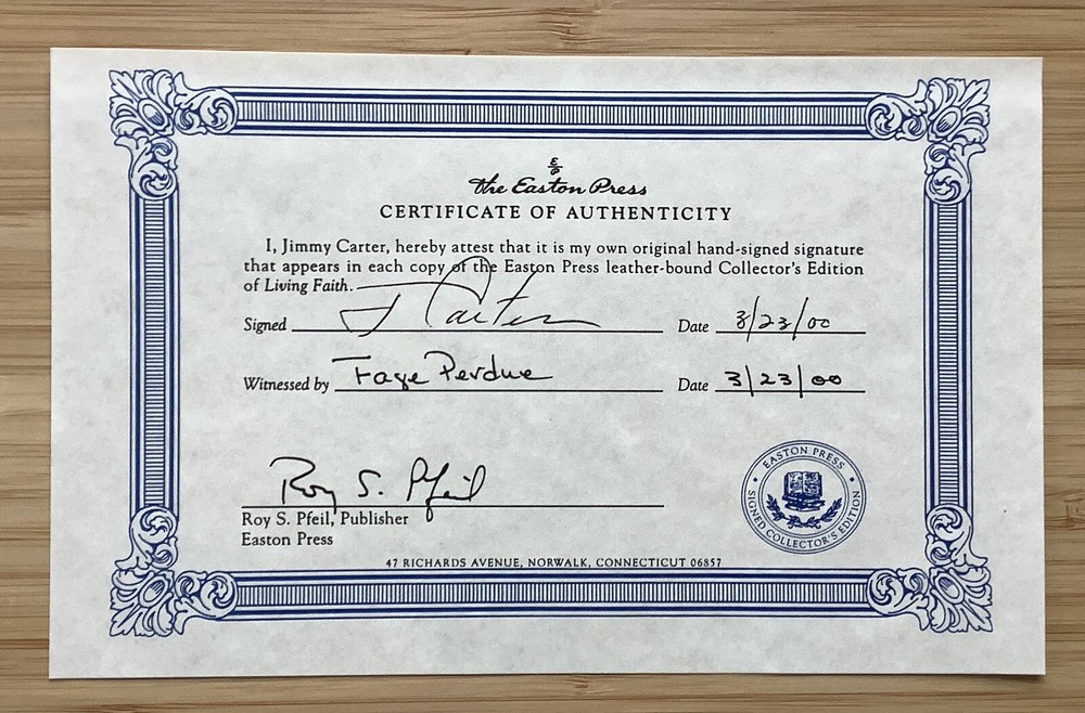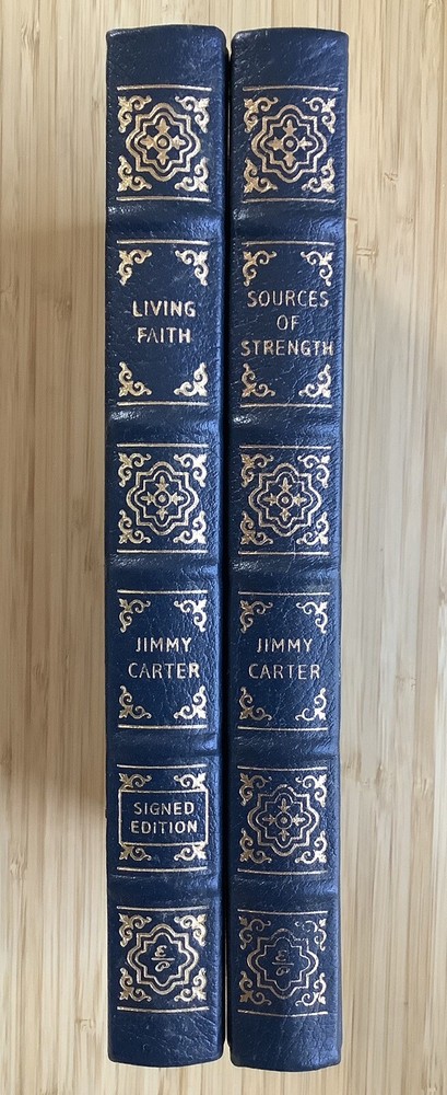 NEW Jimmy Carter 2 book Set: Living Faith & Sources Of Strength, SIGNED by our former President. Beautiful leather bound limited edition. Published by the Easton Press. Shipped with USPS Media Mail.