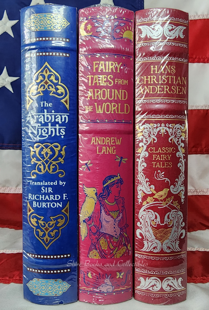 Hans Christian Andersen The Little Mermaid & Other Fairy Tales with Classic Illustrations & Translated by Sir Richard F. Burton The Arabian Nights with full Color Illustrations & Andrew Lang Fairy Tales From Around The World Illustrated BRAND NEW!! Bonded Leather Collectible Editions Item Description These books are brand new and sealed , never read or used in any way, perfect condition. Beautiful gilt lettering and designs on the cover and spine Gold gilt edged pages Satin ribbon book marker attached Bonded Leather bound hardback boards Hans Christian Andersen: Classic Fairy Tales collects 100 of Andersen's incomparable fairy tales and stories, among them "Thumbelina," "The Little Match Girl," "The Princess and the Pea," "The Red Shoes," "The Wild Swans," and his fantasy masterpiece, "The Snow-Queen." The book is abundantly illustrated with more than 100 drawings and color plates by Dugald Stewart Walker and Hans Tegner, two of Andersen's best-known illustrators. Dimensions: 9.4 x 6.5 x 1.6 inches Fairy Tales from Around the World is a treasure trove of the world's best-loved fairy and folk tales. It features more than 100 fairy tales representing more than fifty nations. The book also includes more than 100 illustrations by H.J. Ford that bring their magic and marvels vividly to life. Exquisitely designed bonded-leather binding, with distinctive gilt edging and a silk-ribbon bookmark. Decorative, durable, and collectible, these books offer hours of pleasure to readers young and old and are an indispensable cornerstone for any home library. Dimensions: 9.4 x 6.5 x 1.7 inches The Arabian Nights - Collected nearly a millennium ago, these folktales are presented as stories that crafty Scheherazade tells her husband, King Shahryar, over a thousand-and-one consecutive nights, to pique his interest for the next evening's entertainment . . . and save her life. They include "Sinbad the Sailor," "Aladdin and His Magic Lamp," and "Ali Baba and the Forty Thieves." Full Color illustrations by René Bull. Dimensions: 9.4 x 6.5 x 1.7 inches Shipping FREE Shipping within the continental USA will be via USPS Media Mail. Priority Mail is available for an extra $20 shipping charge. If you are from an American location that is not part of the continental USA , you will be required to pay for Priority Mail. I have set these locations as Exclusions, but I will be happy to remove the exclusions upon request and agreement to pay for the $20 for Priority Shipping. International Shipping will be via eBay Global Shipping Program. I use Media Mail to send to the Global Shipping center in Kentucky, however, if you wish for it to arrive at the center more quickly, you can add $20 to have it shipped there Priority. All of my books are shipped in sturdy, safe and secure boxes. I will gladly combine multiple items for shipping. Return Policy: Returned or exchanged items must be in original condition to qualify for a refund, and must be returned within 30 days from the purchase date. Customers are responsible for all return or exchange shipping charges. Once the returned item is received back to me and I can verify condition, I will process the Refund. Track Page Views With Auctiva's FREE Counter