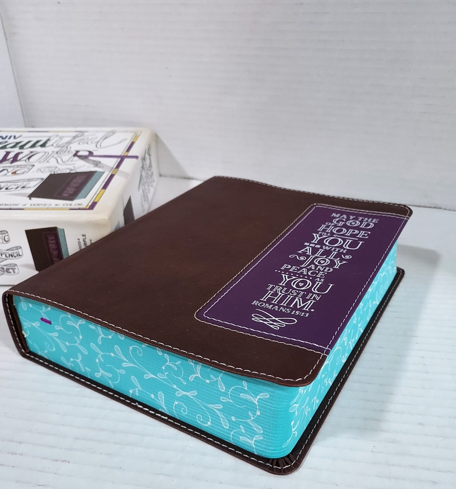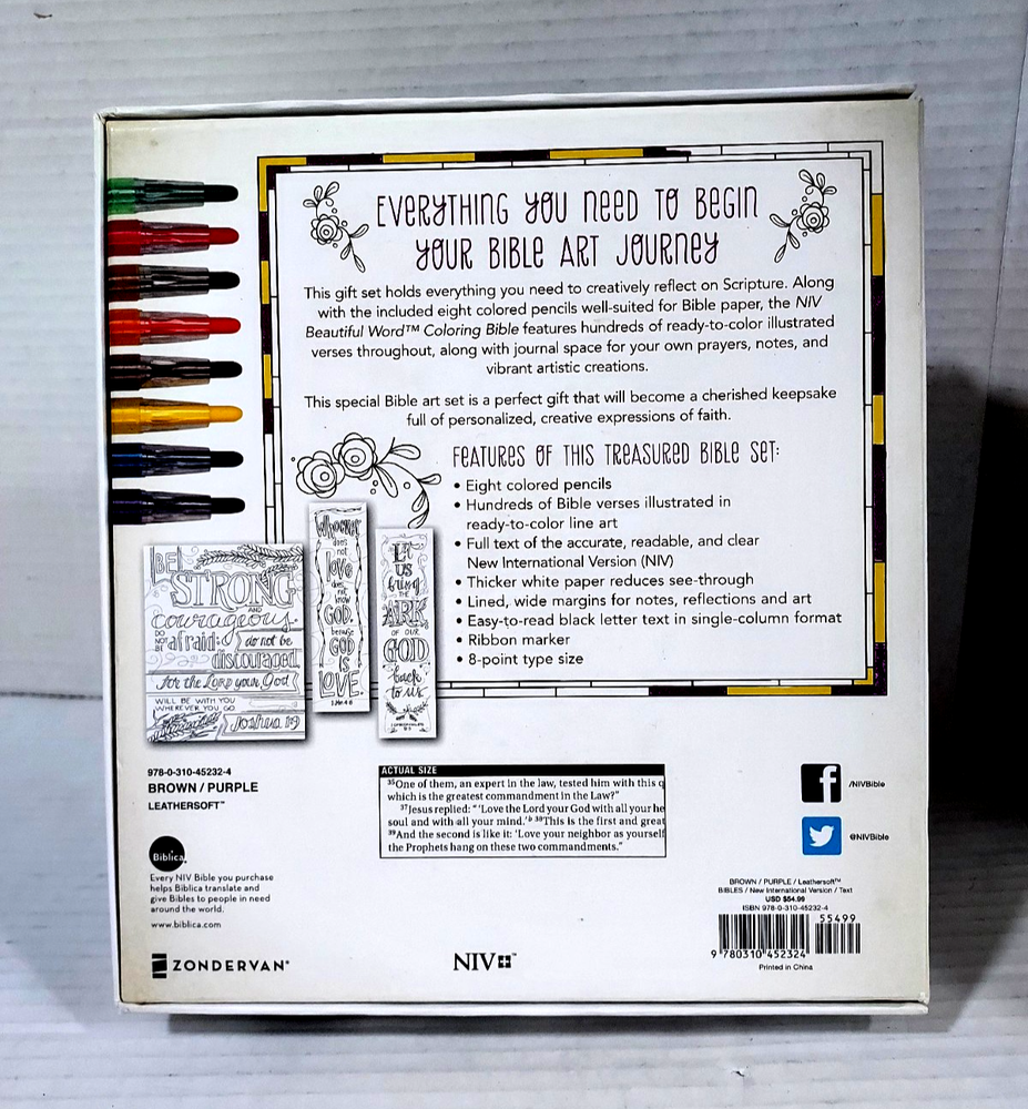 NIV Beautiful Word Coloring Bible w/Pencil Gift Set Leather Bound Easy to Read NEW ~ Never used ~ Inscribed on first page ~ Very nice condition Please ZOOM photos for condition THANK YOU FOR LOOKING : ) We appreciate you supporting our small business