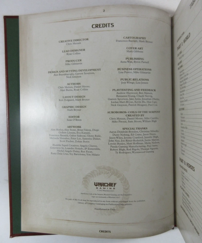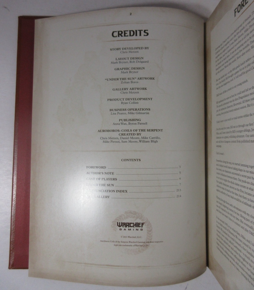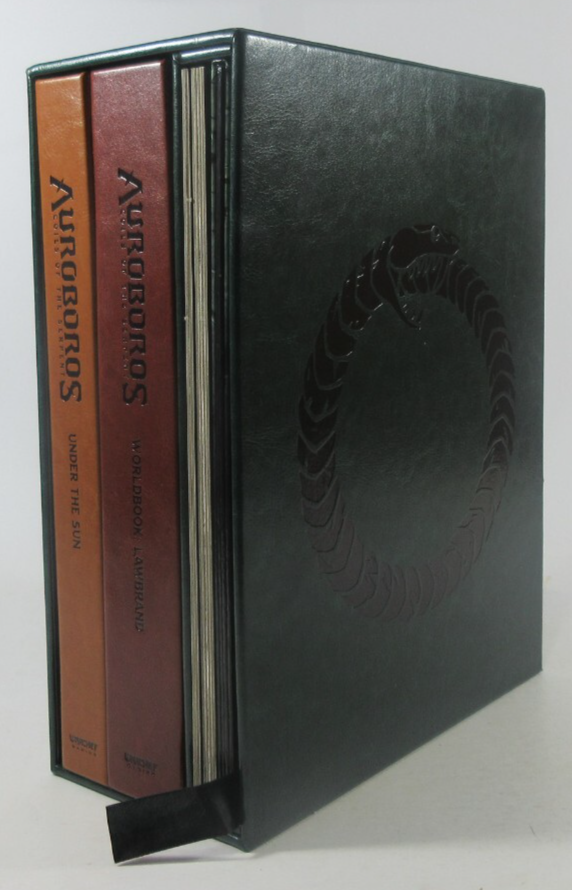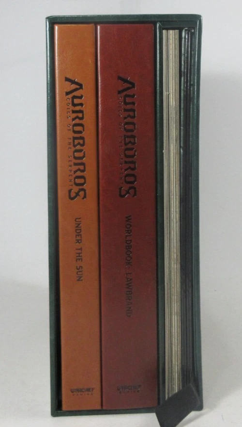 I am selling a Collector's Edition " Auroboros: Coils of the Serpent " Set. Includes 2 Leather-bound books: Under the Sun & Worldbook: Lawbrand by Chris Metzen, A Setting Map & DM Screen in a leather slipcase. All contents are in Like New condition. Please see photos for additional details. shelf reference #L-2000