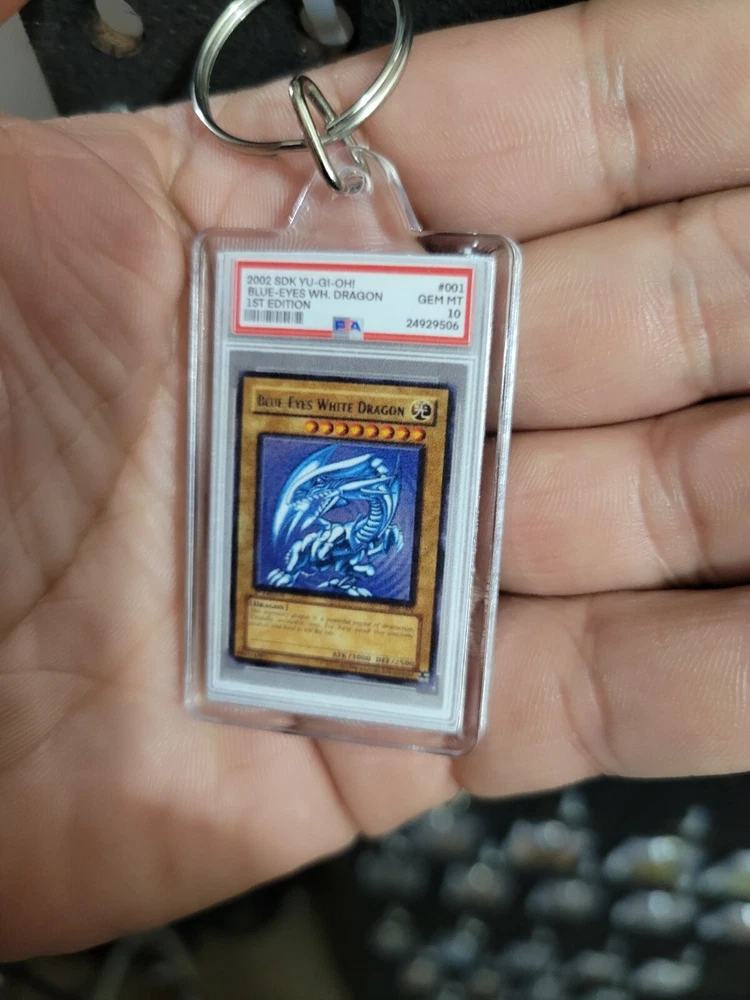 this is a photo copy of a graded card in a keychain. THIS IS NOT AN ACTUAL GRADED CARD. NOT INTENDED TO OPEN NOT ACTUAL CARD INSIDE Great gag gift or novelty item for personal use.