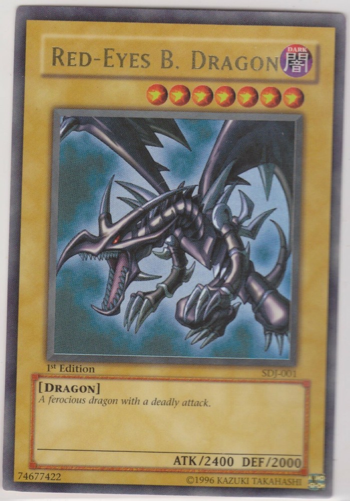 You are bidding on one: NRMT-MT Yu-Gi-Oh 1st Edition Red-Eyes B. Dragon Card #SDJ-001 Ultra Rare Holographic Card Never Played The card you see in the photos is the exact card you will receive. The card will be shipped in a top loader to preserve its condition. Free Insured, Expedited shipping to the USA or Canada!