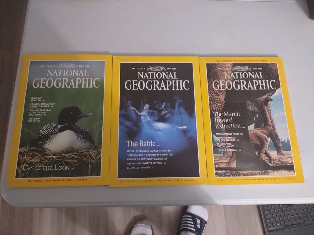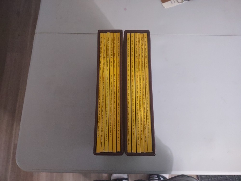 National Geographic Magazine Complete 1989 Set With Brown Leather Slip Case