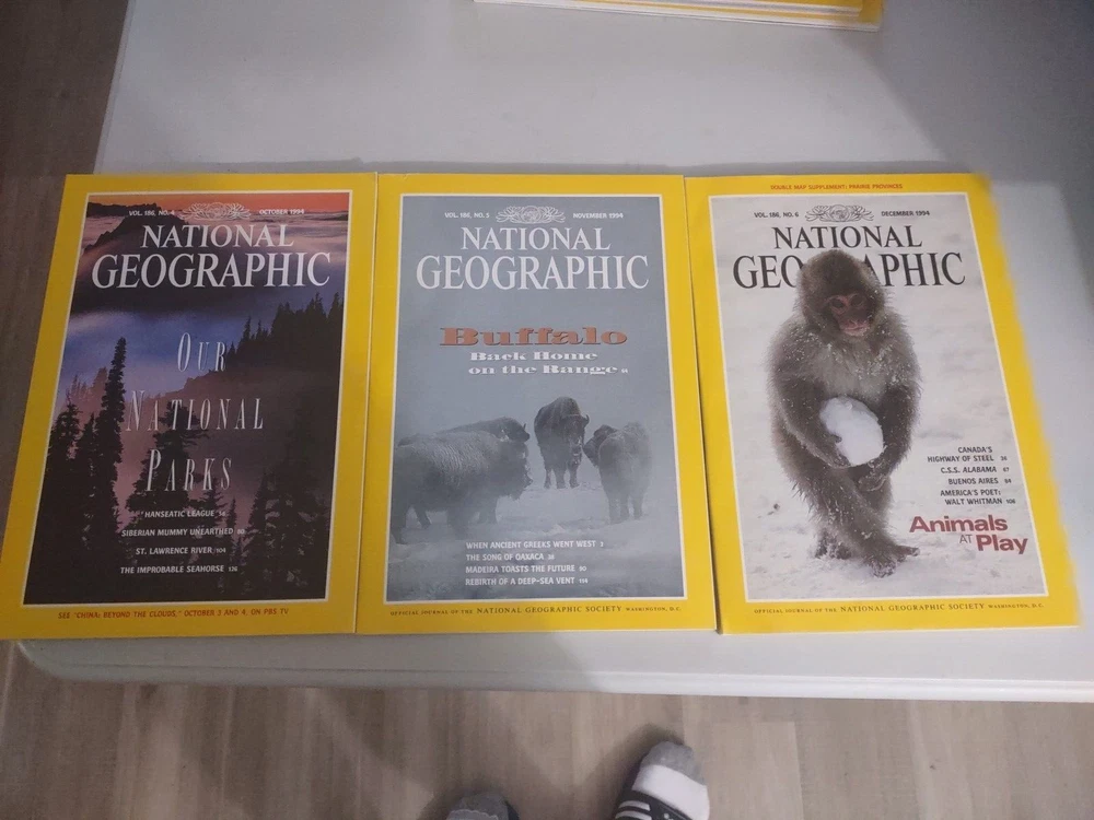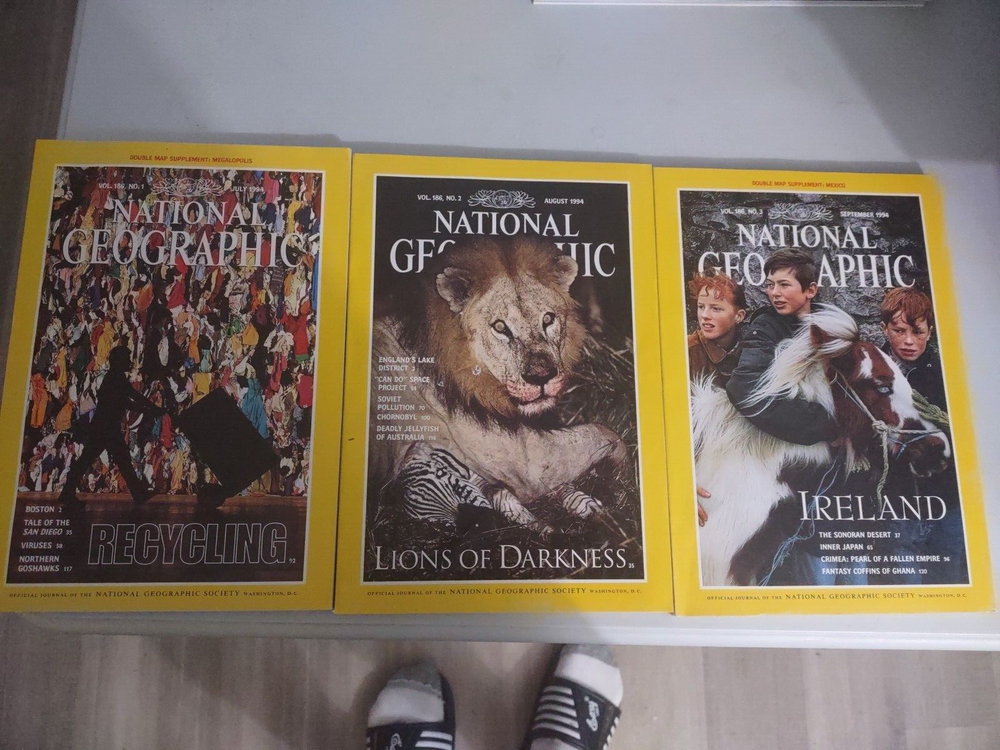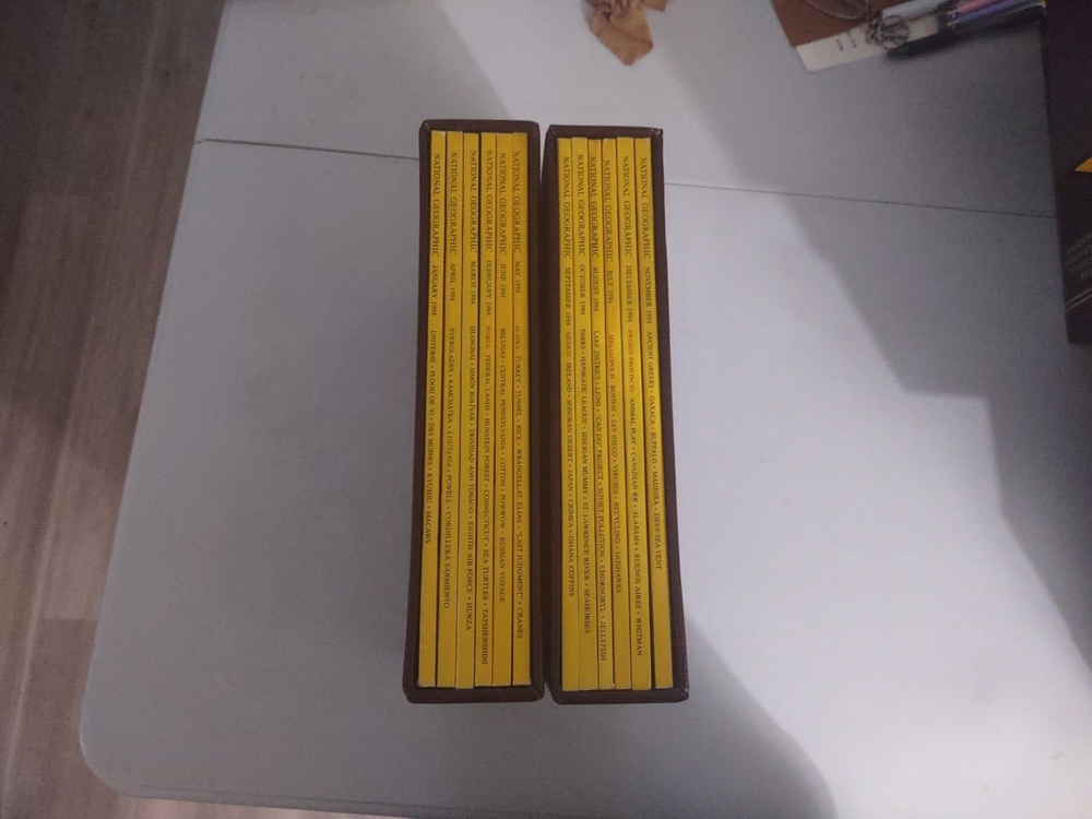Book Sale! This is two leather bound slip cases with a years worth of National Geographic magazine. These magazines are in good condition, see pictures If you have any questions or would like more pictures please let me know. I try to convey the condition of the book thru the pictures. I am an avid reader myself, and I started selling books as a way to pay for the books I read. I love the feel of the book in my hands and I have created my own library of all the books I have read. I am now a full time caregiver to my wife whose has muscular dystrophy. She is totally dependent on me. This store is now my way of trying to make a little extra money to allow me to stay home and take care of her. So, if you have any issues with my books please let me know. I will always work with you and do my best to make sure you are satisfied. I get alot of my books from estate sales and I sometime might miss something wrong with the book. My goal is to provide an affordable book to those that also love books. I also offer combine shipping on books at a dollar each additional book, just add the books to your cart and it should automatically calculate. I hope you enjoy any books you choose and come back again. I am always provided discounts to those who watch my books. Books are meant to be read and cherished, not sit on my shelfs. thanks for your interest in my books. BMESJUN0724