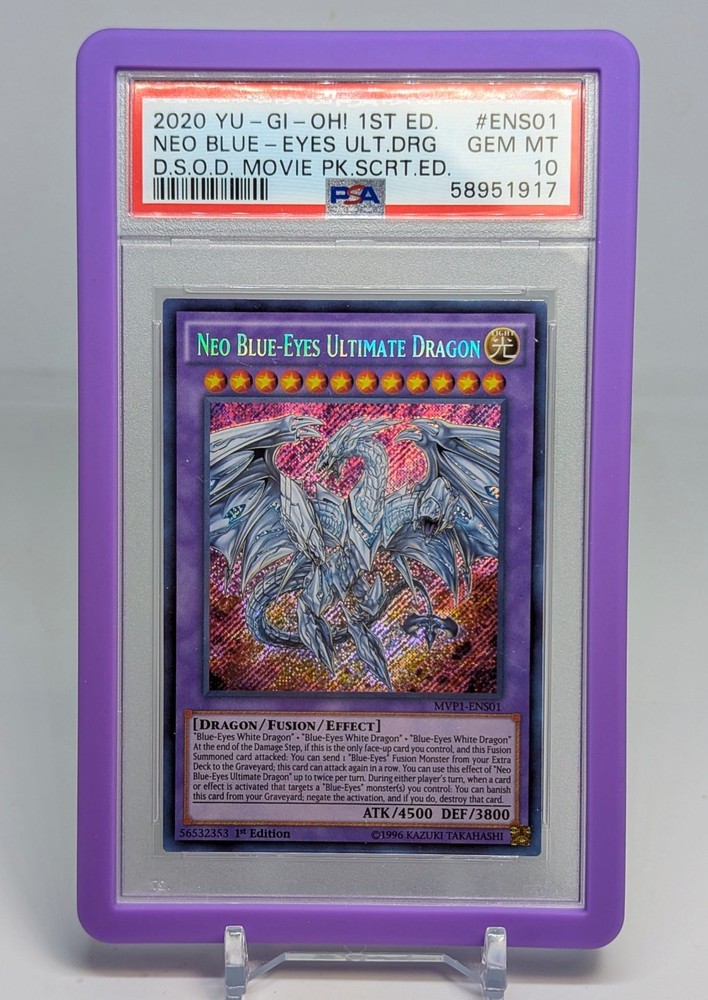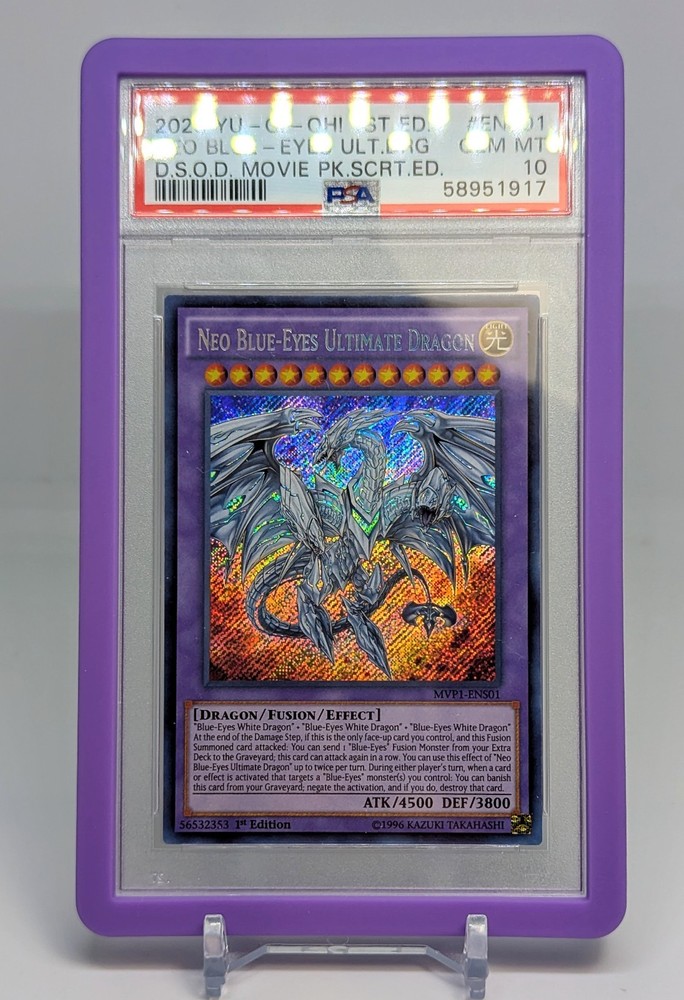 This Neo Blue-Eyes Ultimate Dragon is absolutely stunning! The Secret Rare foil makes it pop, and with 4500 ATK, it’s a powerhouse in any deck. As a 1st Edition from the movie pack, it’s super rare and a dream for collectors. The condition is flawless—perfect for dueling or display. A must-have for Yu-Gi-Oh! fans!