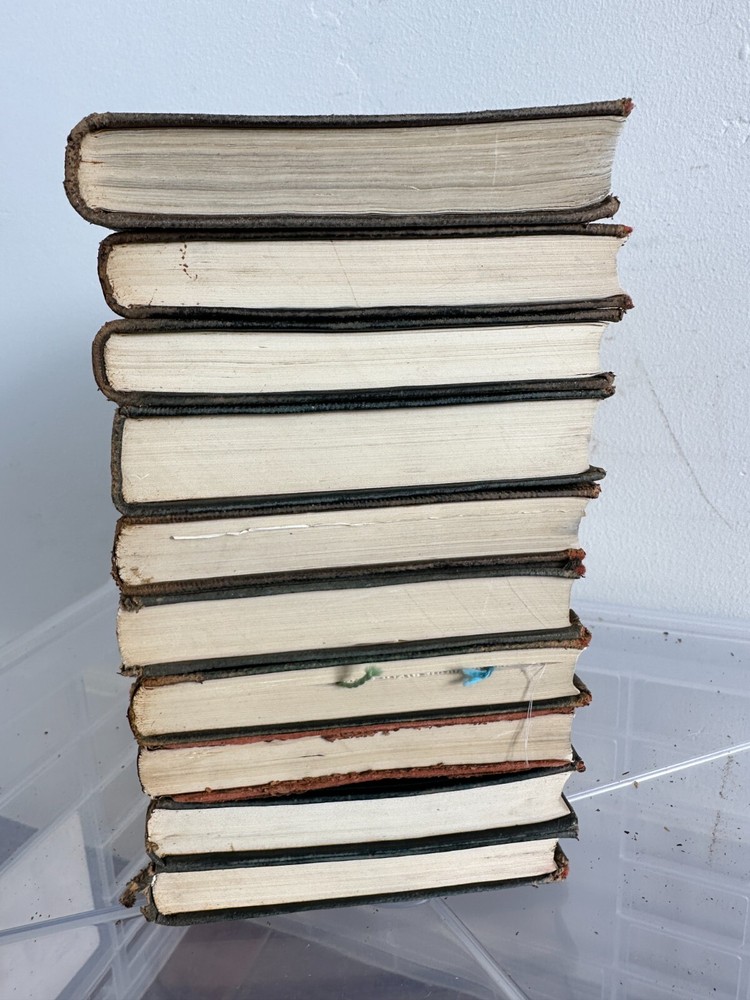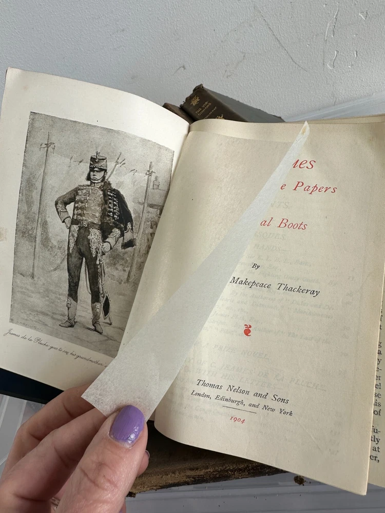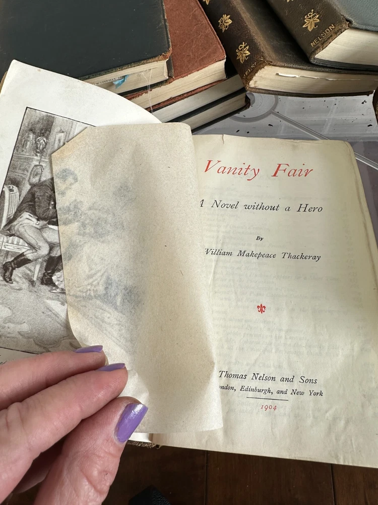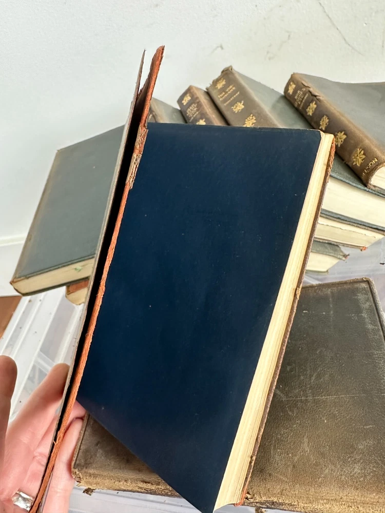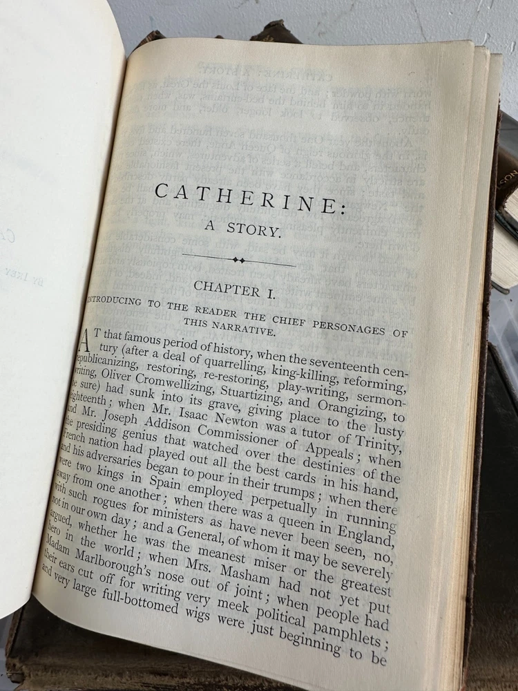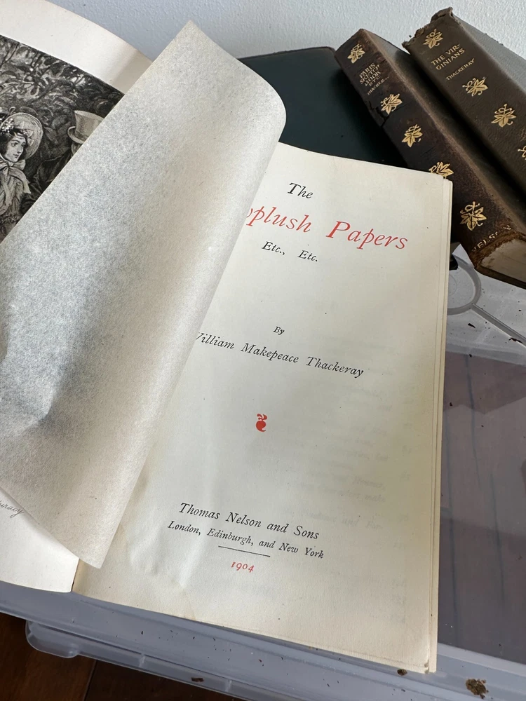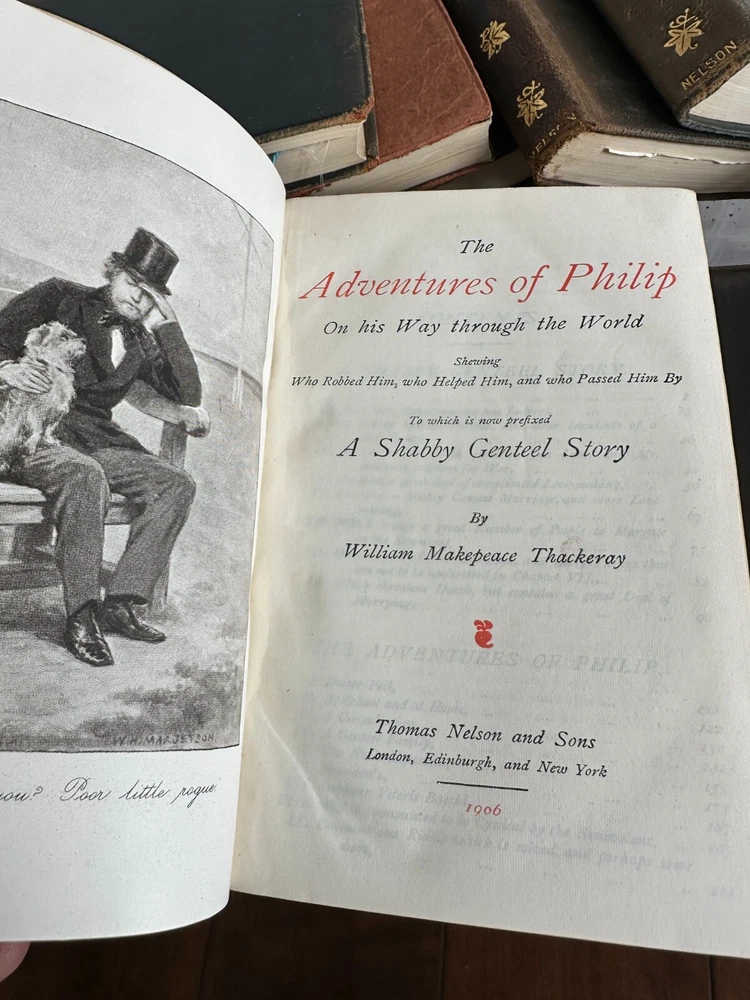 New Century Library: Works of William Makepeace Thackeray 10 leather bound soft Volumes. 6" x 4". Included are volumes: Vanity Fair V. I 1904 Signed May 26, 1905 The Paris Sketchbook The Irish Sketchbook Etc. V. V 1903 Burlesques The Fitzboodle Papers V. VII 1904 Men's Wives/ The Yellow Plush Papers V. VIII 1904 The Virginians V. IX 1909 The Adventures of Philip V. X 1906 2 torn pages Catherine Lovel The Widower V. XI 1904 The Memoirs of Barry Lyndon Esq V. XII 1906 Essays, Reviews V. XIII 1909 Contributions to Punch V. XIV 1909 Please ask for specific photos if needed. See my feedback. I am an honest eBayer since 1998l.